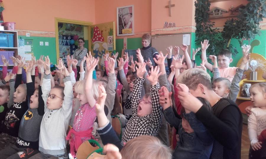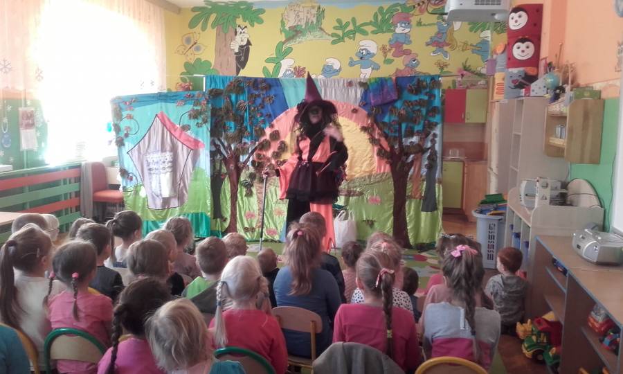 Kolejny juz raz w naszym przedszkolu gościliśmy aktorów Teatru Profilatycznego Edukacja i Animacja ,,Magik” z Białegostoku, którzy przedstawili teatrzyk pt. „Igraszki Czarodziejki Honoratki”. Dzieci wspólnie z Czarodziejką Honoratką Szczerbatką uczyły się właściwych zachowań proekologicznych natomiast z jeżem, doktorem Czyści-Ząbkiem, utrwalały zasady dbania o higienę jamy ustnej, m.in. ograniczenie słodyczy, mycie zębów po każdym posiłku i wizyta u stomatologa. Dzieci wspólnie z aktorami utrwalały numery alarmowe, a także określały właściwe zachowania w sytuacjach zagrożenia. Czarodziejka Honoratka dzięki pomocy dzieci nauczyła się trzech magicznych słów: ,,proszę, przepraszam, dziękuję”.