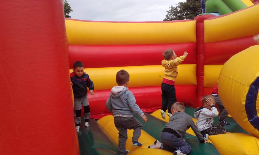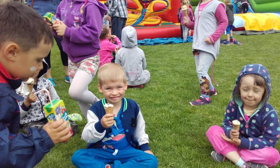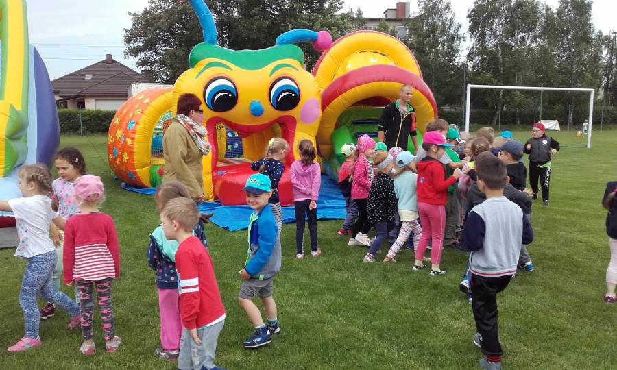 Kolejny już raz dzięki uprzejmosci pana Mirosława Kopki - dyrektora GOKSiR w Pruszczu, spotkalismy sie z przedszkolakami z Pruszcza, Serocka i Zbrachlina aby wziąć udział w sportowych zmaganiach a przede wszystkim wspólnej wesołej zabawie. Na boisku sportowym czekały na dzieci dmuchane zjeżdzalnie, do których ustawiały się długie kolejki. Chętne dzieci brały udział w zabawach sportowych ze współzawodnictwem i tu nalężą się brawa dla naszych sportowców, którzy wygrali wszystkie konkurencje.