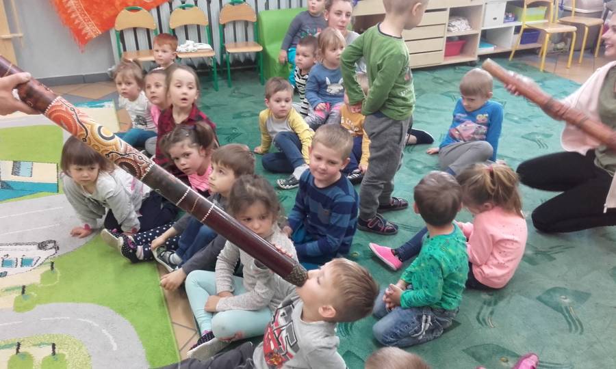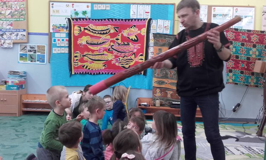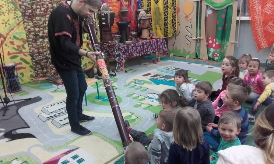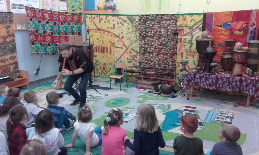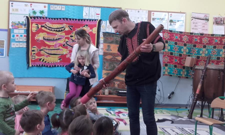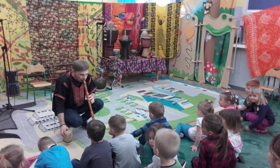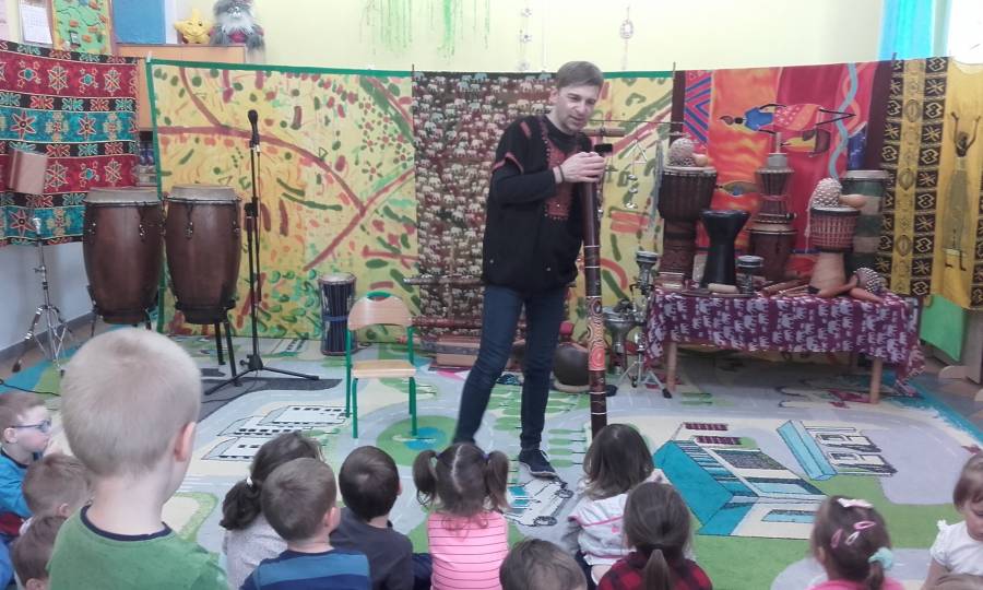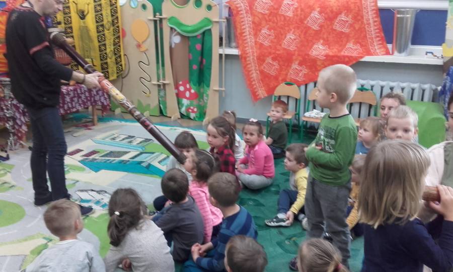 Nasze przedszkole odwiedził Andrzej Głowala z instrumentami etnicznymi. Dzieci miały okazję poznać, obejrzeć oraz zagrać na unikatowych instrumentach. Dźwięki tych niespotykanych instrumentów rozbrzmiewały po naszym przedszkolu.