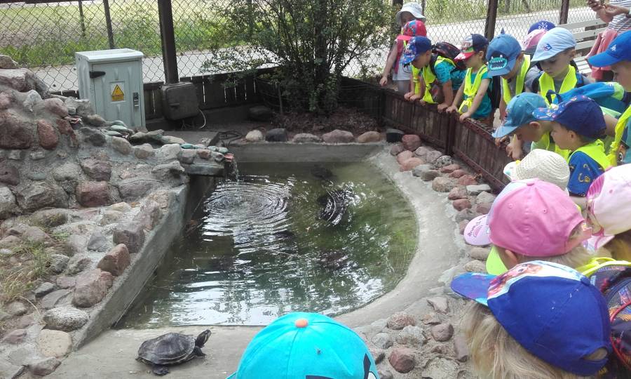 W poniedziałkowy ranek dzieci z młodszych grup:Krasnoludki, Smerfy i Pszczółki wyjechały do Myślęcinka. Głównym celem wycieczki było zwiedzanie terrarium i ZOO. Pogoda nam dopisała, dzięki czemu mogliśmy spokojnie spacerować alejkami ogrodu zoologicznego i podziwiać różne gatunki zwierząt.