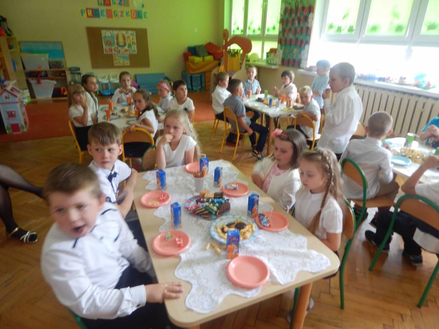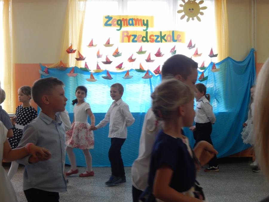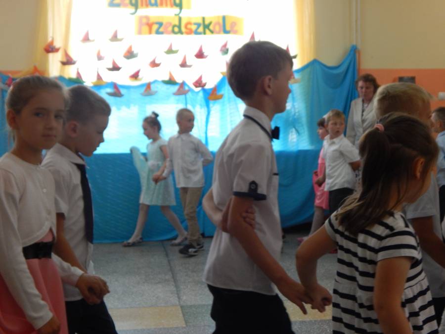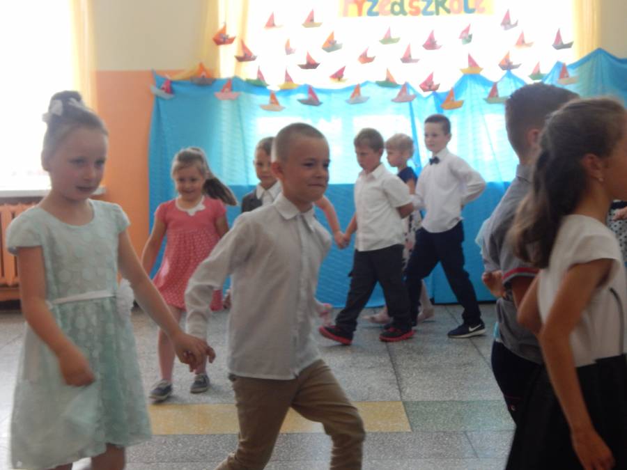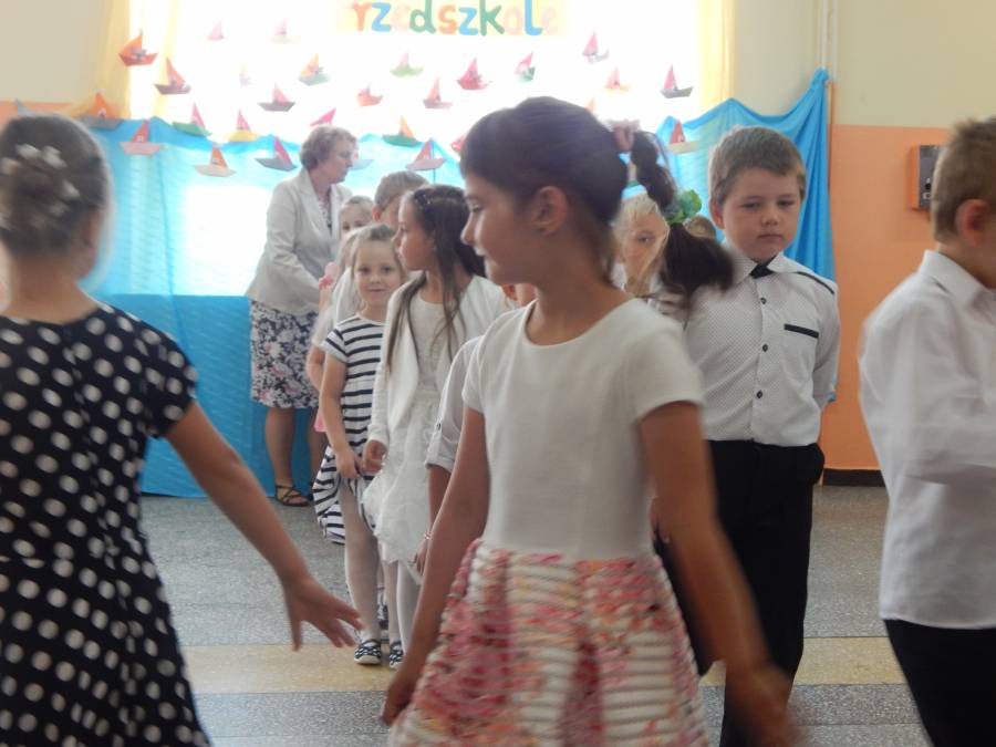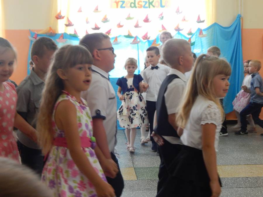 Uroczystość zakończenia roku szkolnego starszacy z grup Motylków i Biedronek rozpoczęli, jak na absolwentów przystało, tanecznym krokiem poloneza. Były też wiersze i piosenki o wakacjach oraz słodki poczęstunek dla dzieci, rodziców i zaproszonych gości.