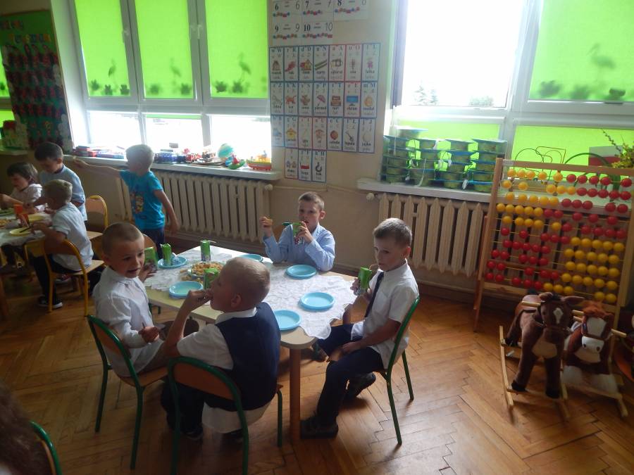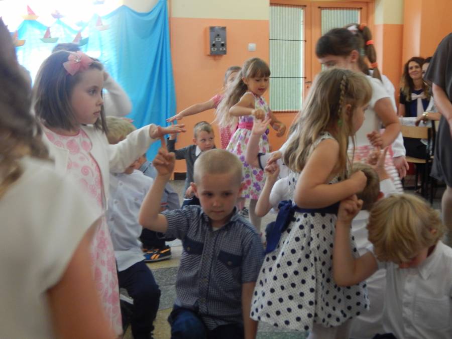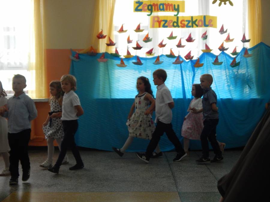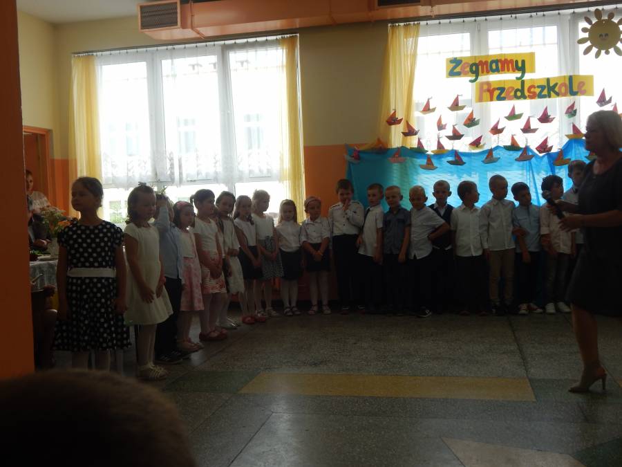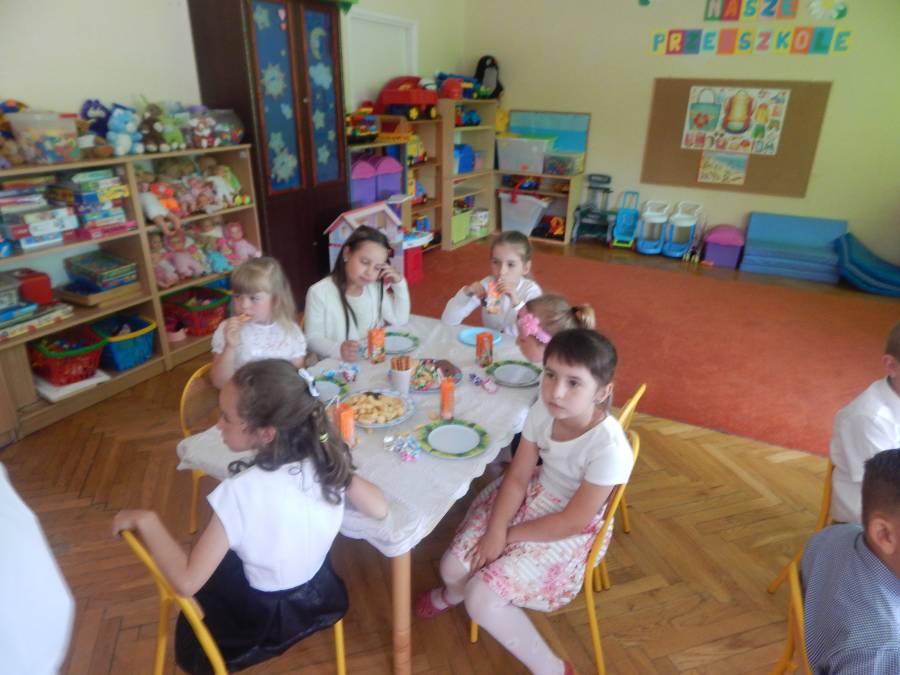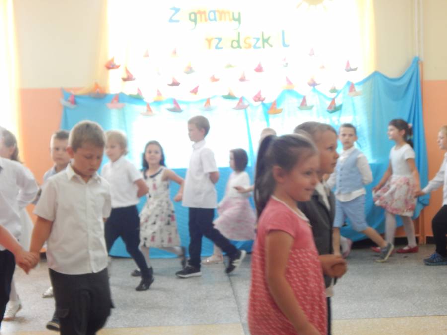 Uroczystość zakończenia roku szkolnego starszacy z grup Motylków i Biedronek rozpoczęli, jak na absolwentów przystało, tanecznym krokiem poloneza. Były też wiersze i piosenki o wakacjach oraz słodki poczęstunek dla dzieci, rodziców i zaproszonych gości.