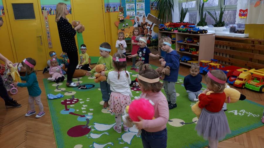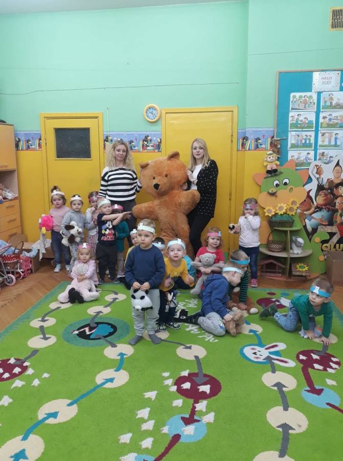 Przedszkolaki zostały zaproszone do wspólnej zabawy w misiowej krainie. Poznały historię Święta Pluszowego Misia, wspólnie bawiły się przy piosenkach o misiach. Dla dzieci w tym dniu przygotowano wiele atrakcji: zabawy ruchowe, plastyczne i misiowe tańce.