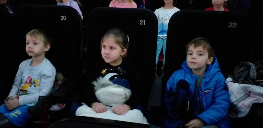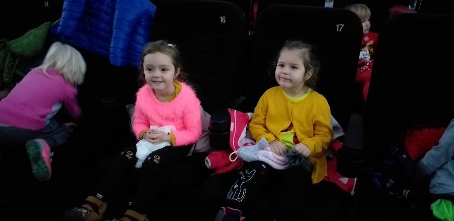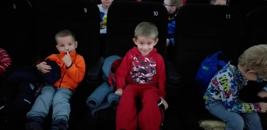 6 grudnia 2019r. przedszkolaki z grup: Motylki, Biedronki, Pszczółki i Smerfy wybrały się na wycieczkę do kina „Wrzos" w Świeciu na bajkę animowaną „Kraina lodu II”. Bohaterki filmu Anna i Elsa wyruszają w niebezpieczną podróż, aby odkryć tajemnicę magicznych zdolności jednej z nich, a także w poszukiwaniu pomocy dla swego Królestwa. Wraz z towarzyszącymi im przyjaciółmi Olafem, Kristoffem i Svenem poznają całkowicie nowy świat. Film dostarczył przedszkolakom całej masy wzruszeń, opowiadając o wartości rodziny i poświęceniu dla innych. Wycieczka wzbogaciła dzieci o nowe, ciekawe doświadczenia, umożliwiła zdobywanie wiedzy jak również okazję do wzmacniania więzi koleżeńskich i wyrabiania u dzieci nawyków kulturalnego zachowania się w miejscach publicznych.