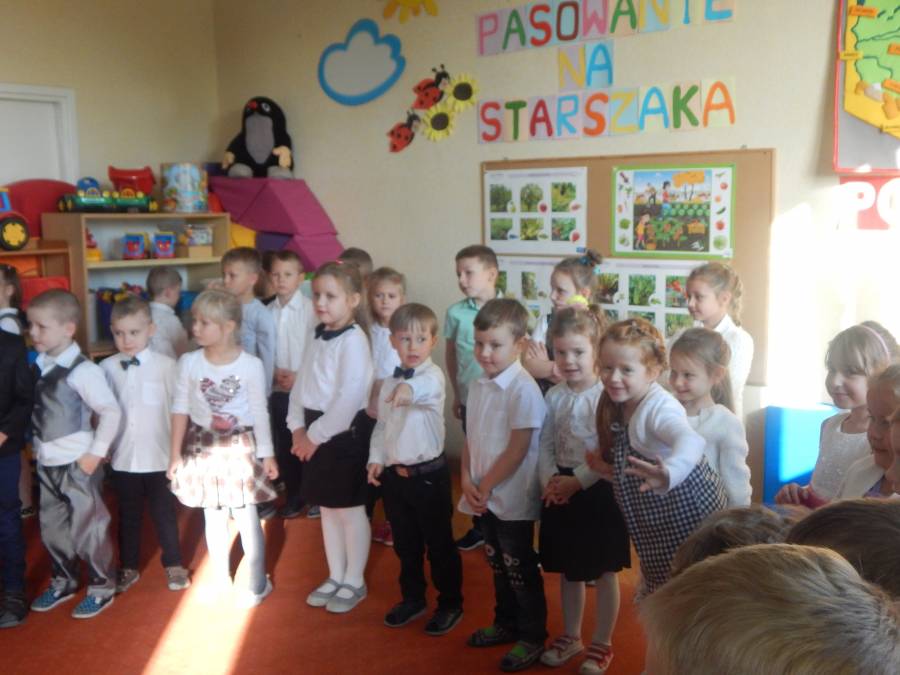 W piątek 13 października dzieci z grup MOTYLKI i BIEDRONKI złożyły uroczyste ślubowanie i zostały pasowane przez panią dyrektor na starszaka. W tym uroczystym dniu dzieci przedstawiły swoim rodzicom oraz zaproszonym gościom program artystyczny. Pięknie recytowane wiersze, wykonywane piosenki i tańce były nagradzane gromkimi brawami gości.