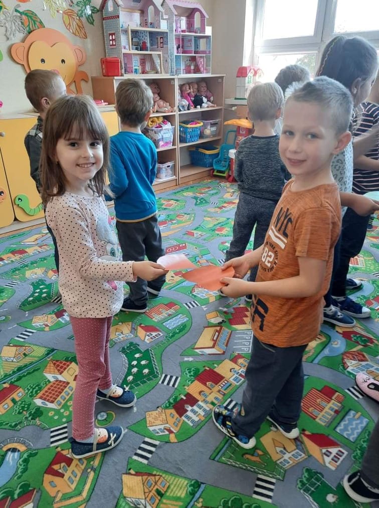 U Motylków i Biedronek Dzień Chłopaka był połączony z zajęciami przygotowanymi przez Panią Monikę Piekarską z biblioteki z okazji minionego Dnia Kropki. Wszystko co robiliśmy kręciło się wokół kropki, były zabawy z chustą animacyjną, gdzie rolę kropek pełniły piłeczki, zabawy przy piosence " Biedroneczki są w kropeczki", w której także "...u Motylka plamek kilka.." Było super. Dziękujemy p. Monice, która obiecała, że na pewno nas jeszcze odwiedzi. I tylko życzyć sobie należy, żeby te spotkania zaowocowały w przyszłości pasją do czytelnictwa.