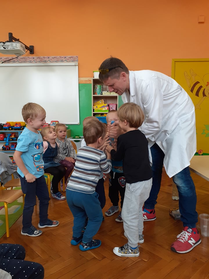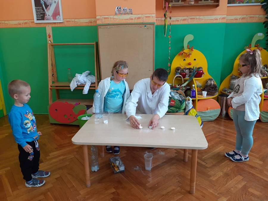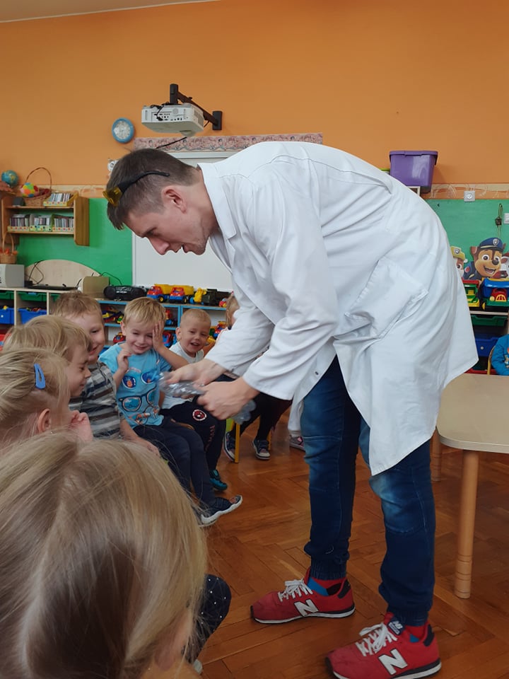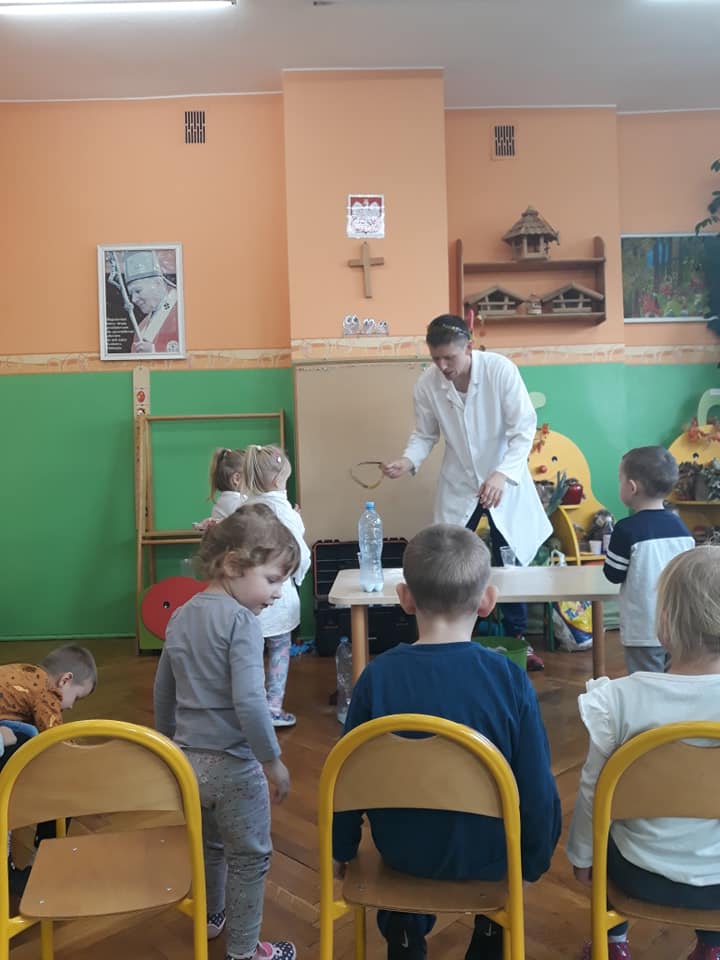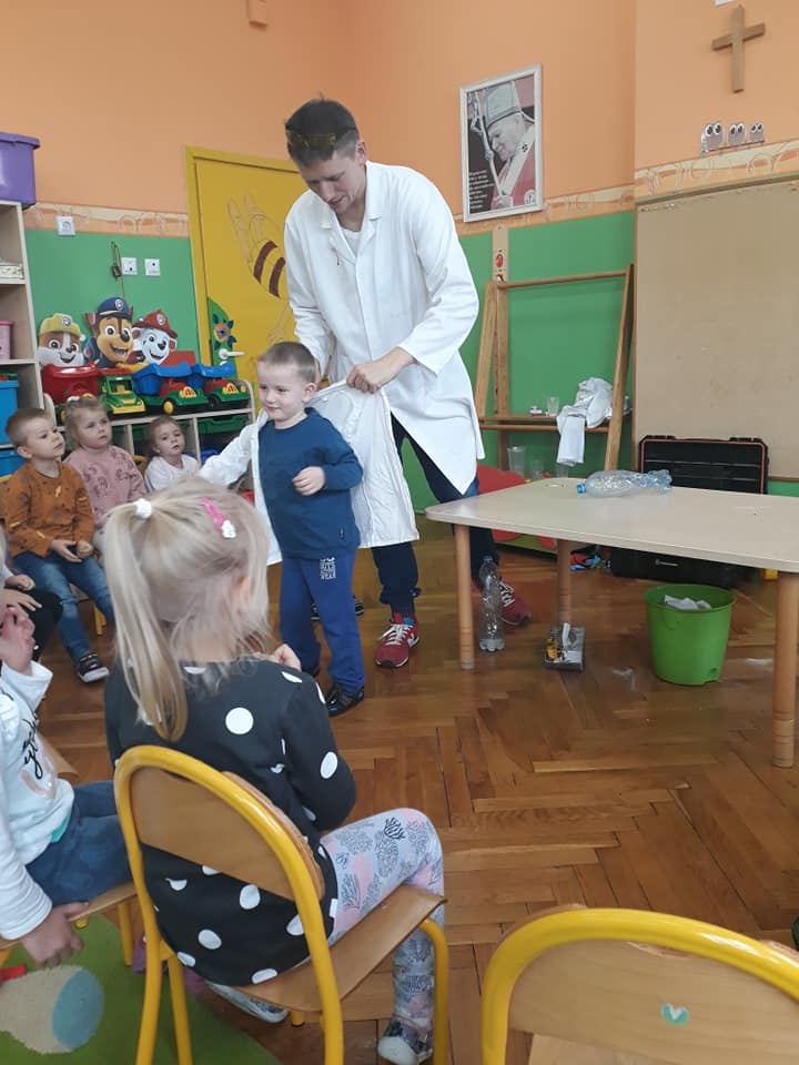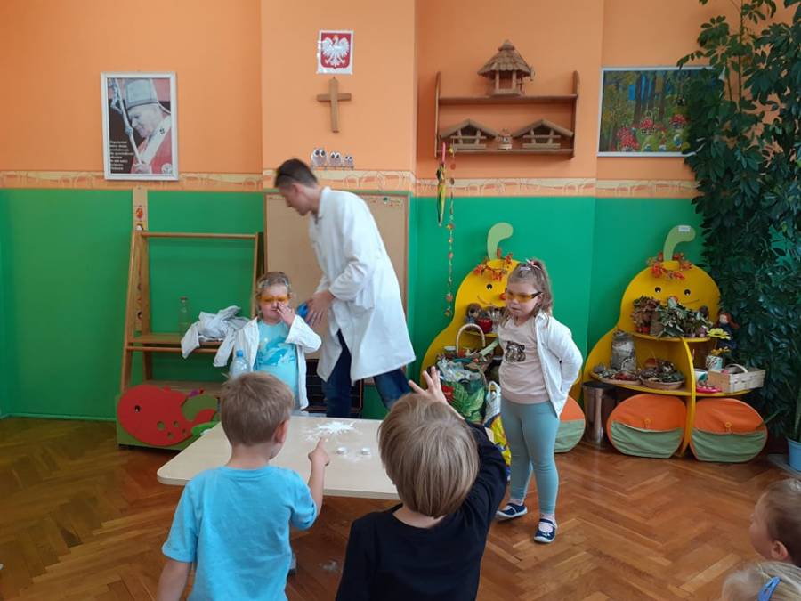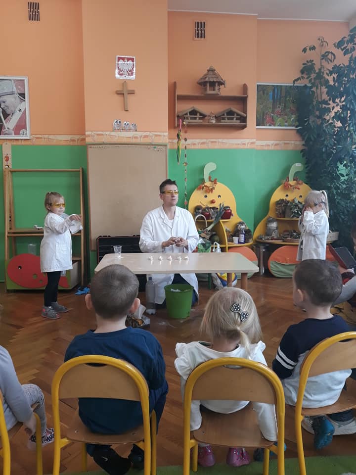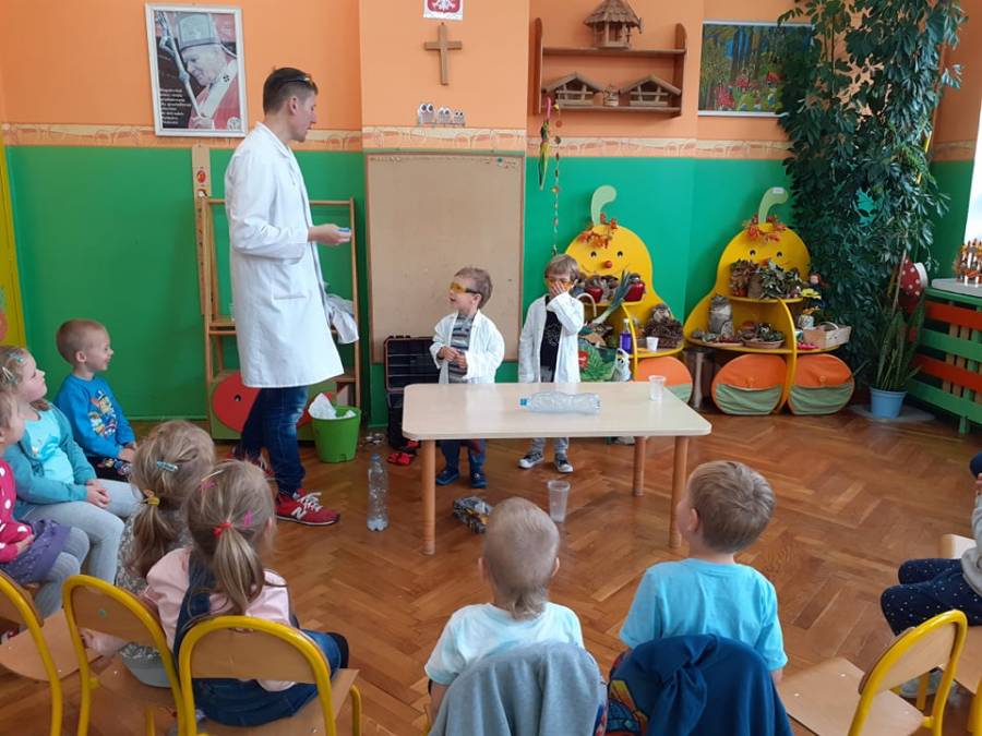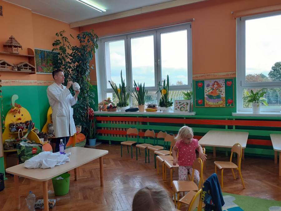12 października przedszkolaki zdobywały wiedzę na zajęciach z cyklu "Eksperymenty naukowe", które prowadził pan Bartosz Pałucki z Torunia. Podczas ciekawych doświadczeń dzieci poznawały właściwości powietrza, a aktywne uczestnictwo w zajęciach sprawiło im wiele radości.