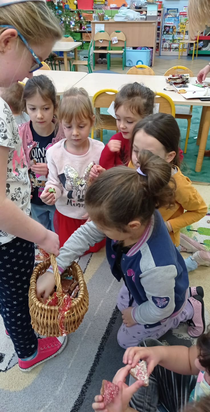 Motylki i Biedronki dalej zgłębiają aromaty Świąt Bożego Narodzenia. Rozebrały na części pierwsze przyprawę do pierników, czyli wygląd, smak i zapach wanilii, gałki muszkatołowej, kardamonu, anyżu, goździków, cynamonu, kurkumy, a na koniec Klaudia i Kacper częstowali najprawdziwszymi, domowymi pierniczkami.
