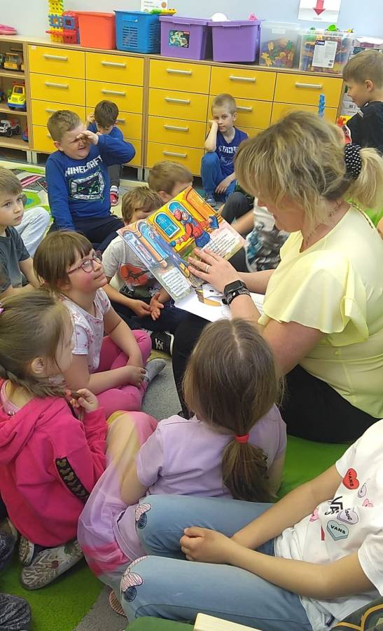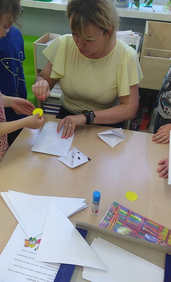 Dzisiaj w dalszym ciagu celebrowaliśmy Tydzień Bibliotek. Słuchaliśmy opowiadania pt.,, Bibliotekarz" R. Pankiewicza, poznając pracę w tym zawodzie, rozmawialiśmy o zasadach zachowania podczas pobytu w bibliotece, o tym jak obchodzić się z książkami i pod okiem naszego gościa zrobiliśmy zakładki techniką origami. Było SUPER!