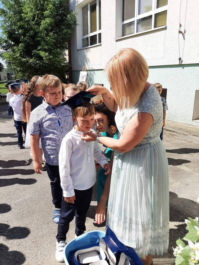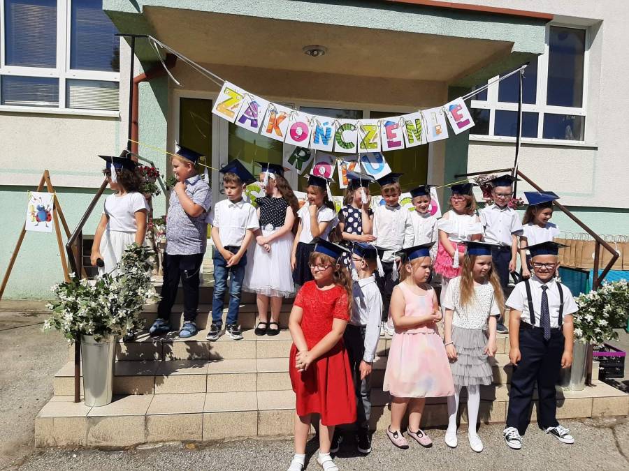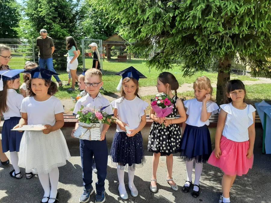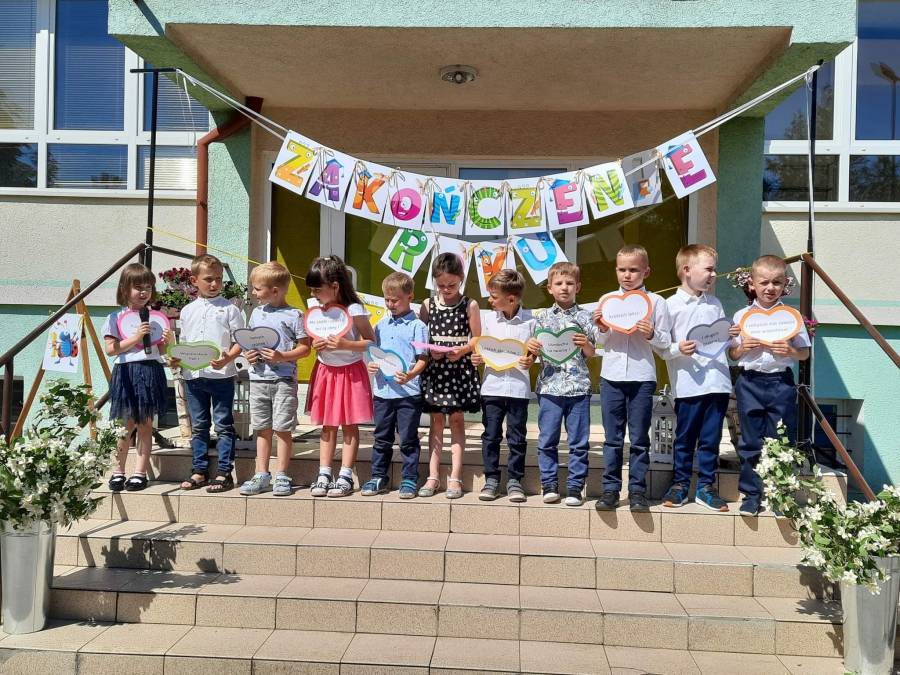 Nasze najstarsze przedszkolaki zakończenie roku szkolnego rozpoczęły od uczestnictwa w mszy świętej i pożegnały przedszkole dzień wcześniej 23 czerwca. Niektóre dzieci swoją przygodę z przedszkolem rozpoczęły cztery lata temu, jako maluszki, a teraz nadszedł czas na naukę w szkole. Życzymy Wam powodzenia w dalszym zdobywaniu wiedzy oraz rozwijaniu swoich umiejętności i zdolności.