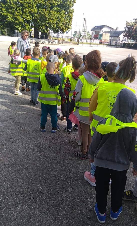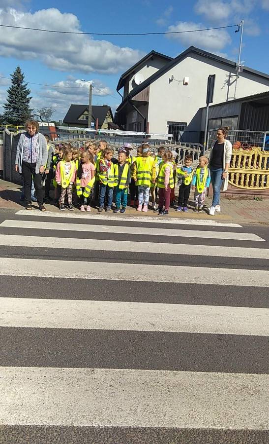 Dzisiaj Motylki i Biedronki rozpoczęły realizację tematu o bezpieczeństwie na drodze. Uzbrojeni w kamizelki ruszyliśmy szlakiem znaków drogowych w naszej miejscowości i ćwiczyliśmy bezpieczne przechodzenie przez ulicę, oczywiście po pasach. Na głównym skrzyżowaniu przechodziliśmy pod okiem naszych policjantów i uwierzcie, bili nam brawo.