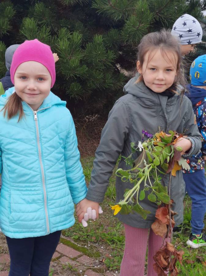 Wprawdzie Motylki i Biedronki powitały jesień kilka dni temu, ale dopiero dziś były na spacerze, który poprzedził cykl zajęć, podczas których poznawały drzewa liściaste, tak by teraz móc je rozpoznać na podstawie wyglądu liści oraz owoców. Nazbieraliśmy mnóstwo skarbów do kącika przyrody. Teraz czekają nas kolejne jesienne zajęcia.