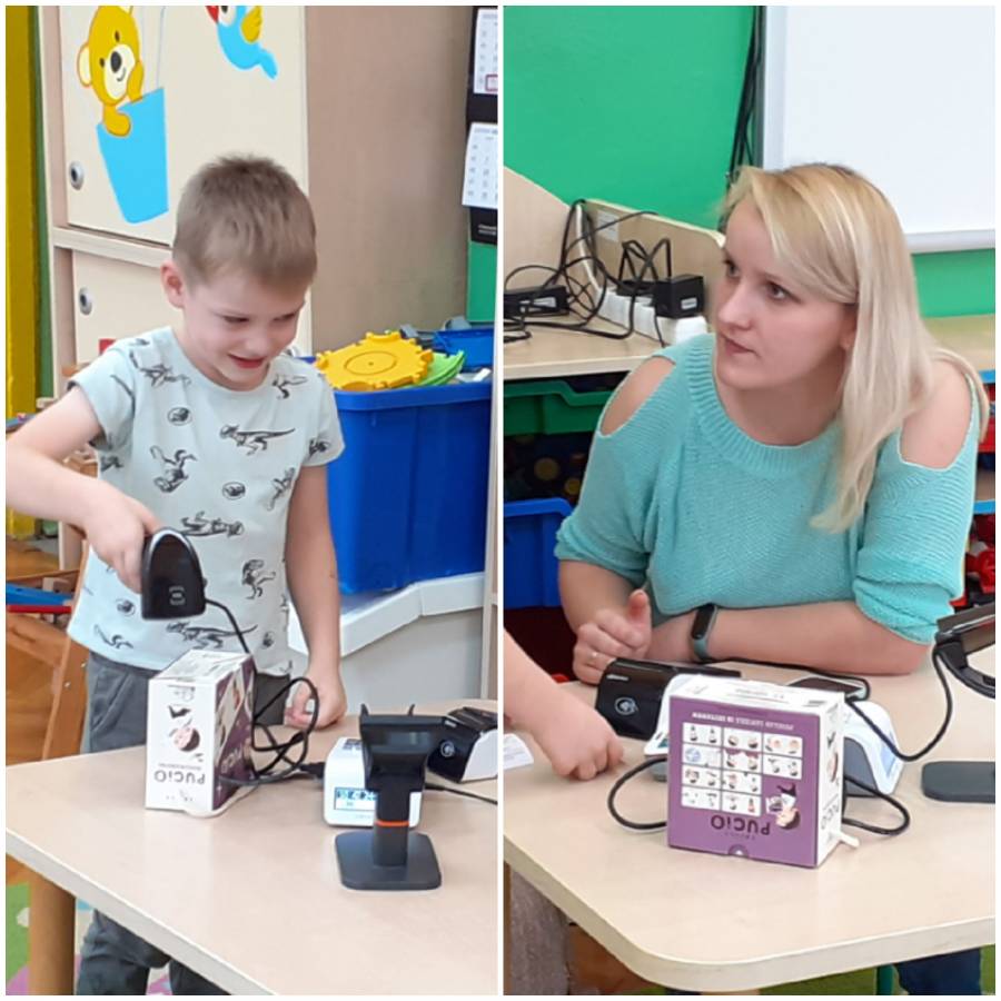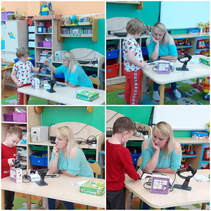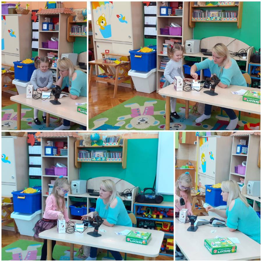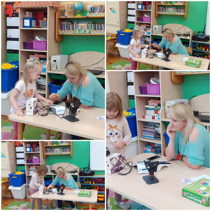 Dzieci z grupy Smerfy odwiedziła Pani Kamila Nowacka, mama Antosi i przybliżła w bardzo ciekawy sposób zawód sprzedawcy????. Dzieci miały okazję skanować kody kreskowe i robić zakupy płacąc kartą. Poznaliśmy również drogę towaru jaką pokonuje od producenta do klienta.