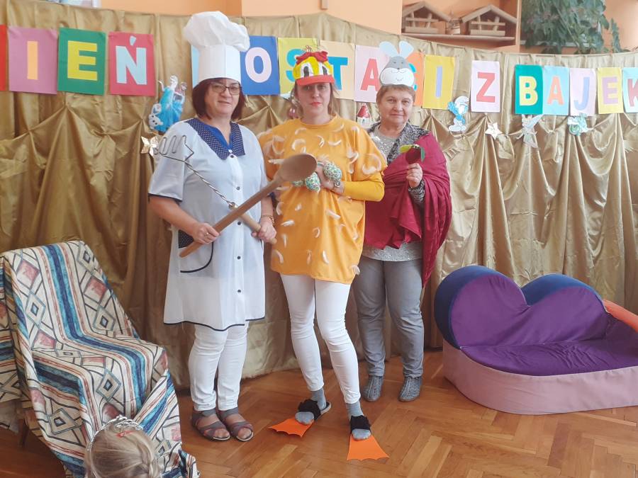 Międzynarodowy Dzień Postaci z Bajek przypada na 5 listopada, jednak w naszym przedszkolu jego obchody odbyły się 7 listopada. U Motylków i Biedronek Dzień Postaci z Bajek odbył się pod hasłem powrotu do klasyki bajki. Okazuje się, że dzieci świetnie znają współczesne bajki, najczęściej oglądane na ekranie, a nie orientują się w tradycyjnych motywach bajkowych. W tym celu zaprosiliśmy Babcie naszych przedszkolaków, które są najlepszym źródłem wiedzy o bajkach. Również Ciocia Monika, jak nazywają dzieci szefową naszej Gminnej Biblioteki wpisała się w dzisiejszy projekt, przygotowując do czytania dzieciom Bajkę o Czerwonym Kapturku . Dzieci z grup: Pszczółki, Smerfy i Krasnoludki obejrzały inscenizację utworu Jana Brzechwy ,,Kaczka Dziwaczka" w wykonaniu nauczycieli i pracowników przedszkola.