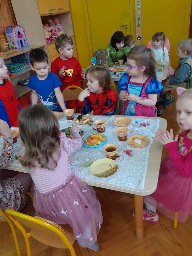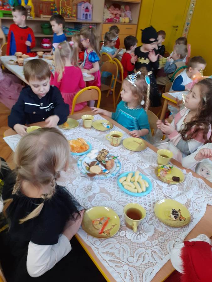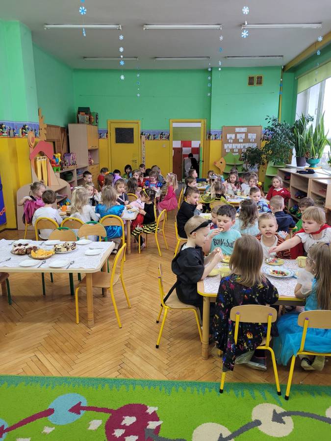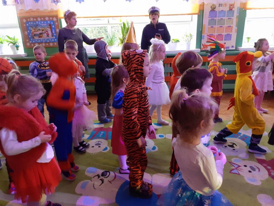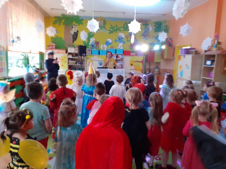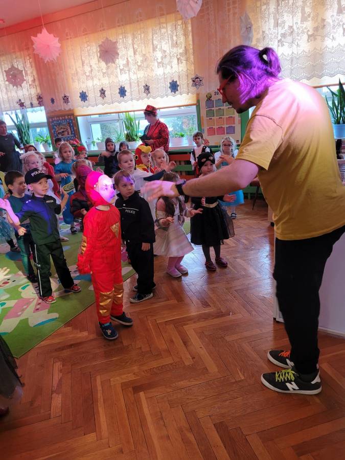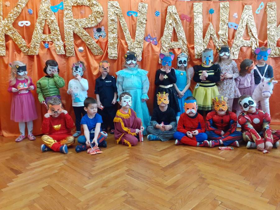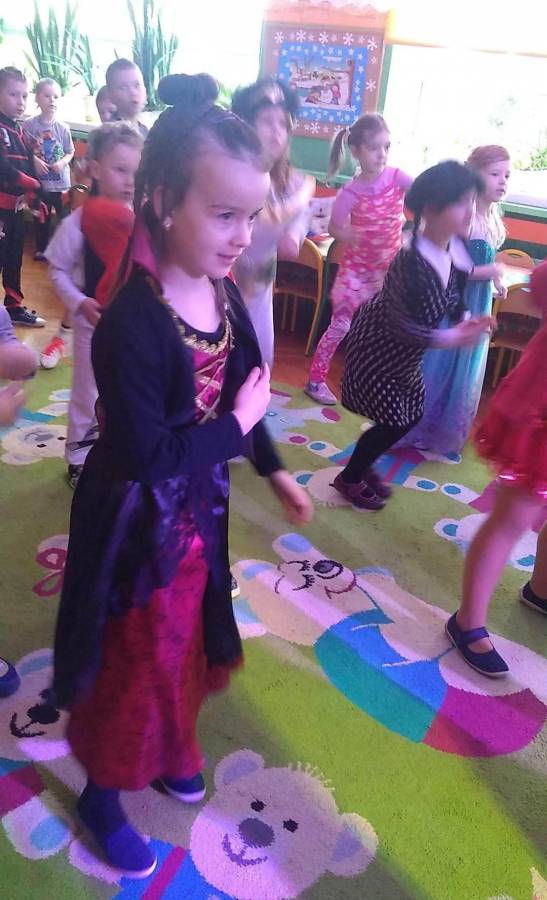 Karnawał w przedszkolu -stroimy więc sale.Ma być w nich bajkowo,przytulnie, wspaniale.Są zwoje serpentyn,wieszamy lampiony,gwiazdeczki błyszczącei barwne balony.Pląsamy po sali,to świetna zabawa.Są stroje bajkowe,niech żyje karnawał.Zabawne konkursy,występy artystów,zagadki i nowychtysiące pomysłów.Wesołą zabawęwodzirej prowadzi.Jak tańczyć każdemuna pewno doradzi.Zabawa w przedszkolu,wesoła zabawa.Niech trwa jak najdłużejwspaniały karnawał.