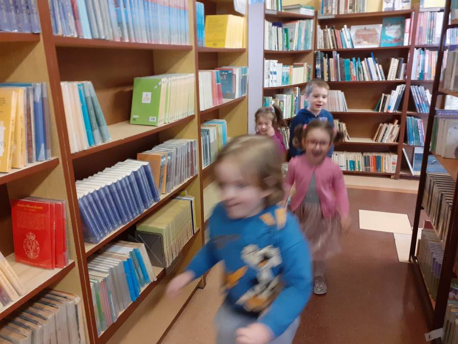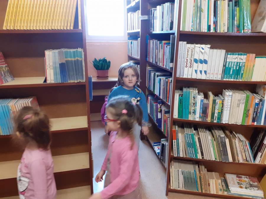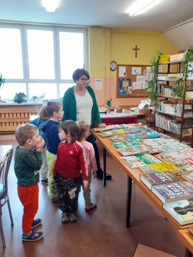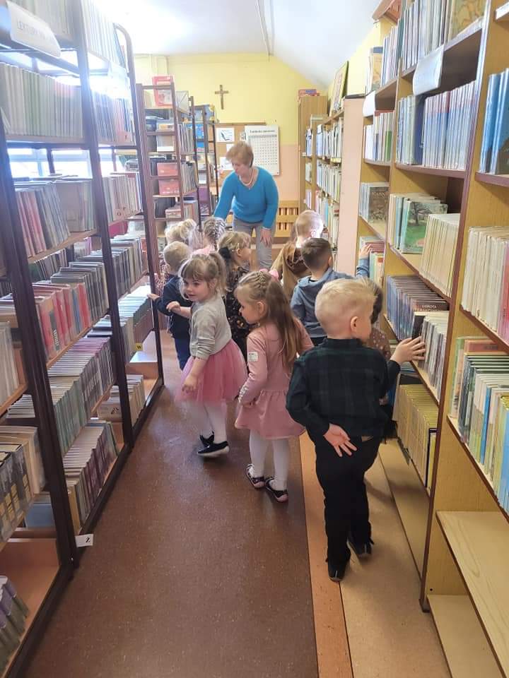 Smerfy i Krasnale z wizytą w bibliotece szkolnej. Dziękujemy p. Ewie i p. Gabrieli za miłe przyjęcie.