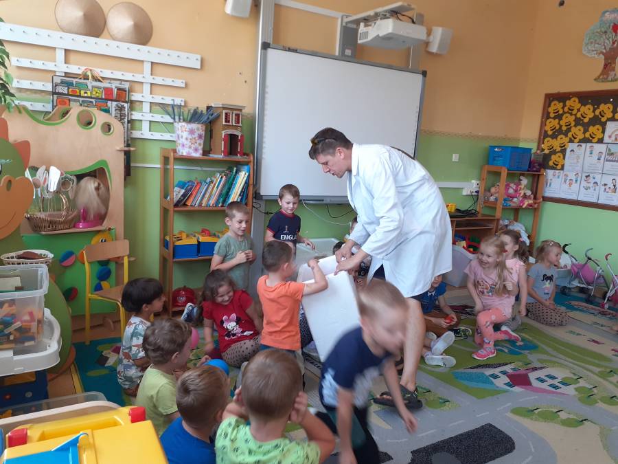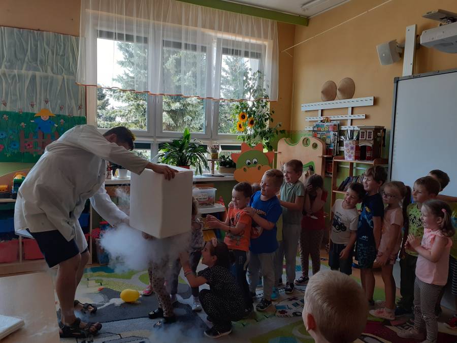 Za nami pierwsze w rym roku szkolnym ale nie ostatnie spotkanie z Panem Bartkiem Pałuckim na zajęciach z cyklu ,,Eksperymenty naukowe". Tym razem pan Bartek wyjaśniał dzieciom, czy lód jest suchy czy mokry?