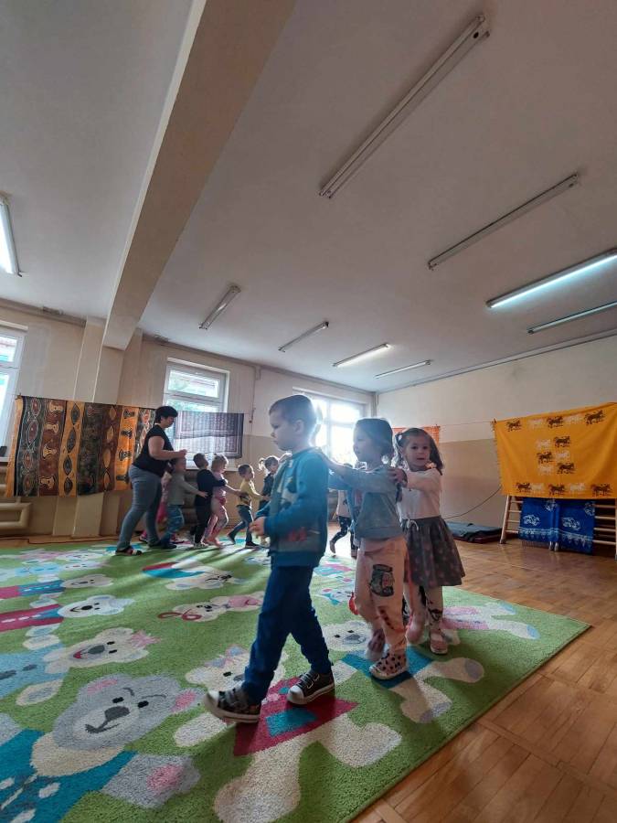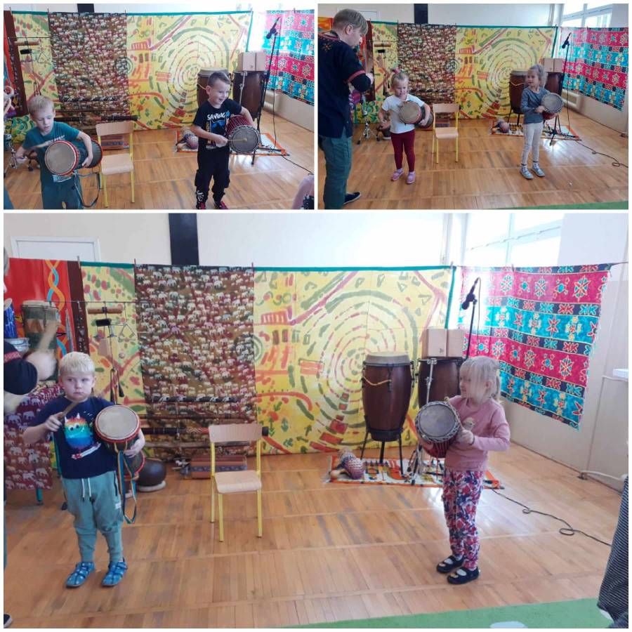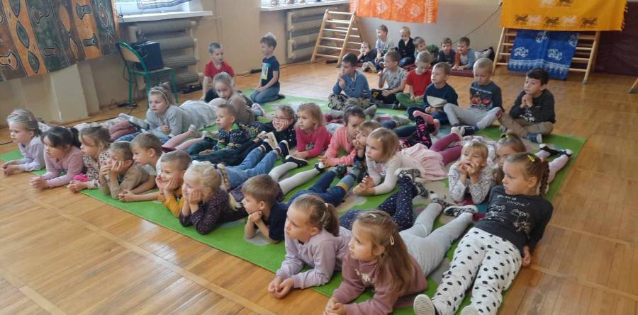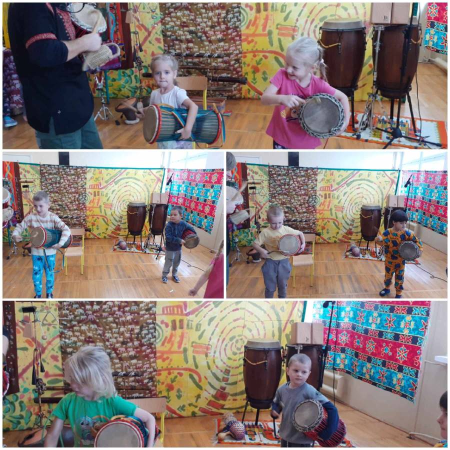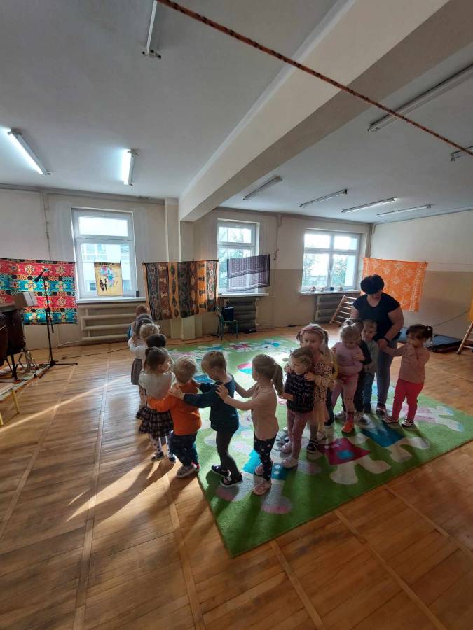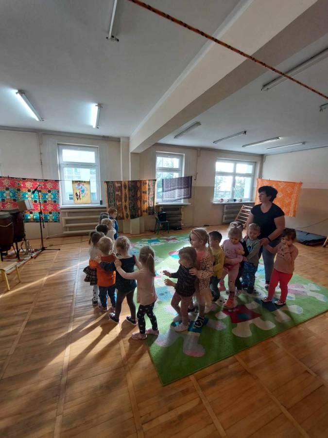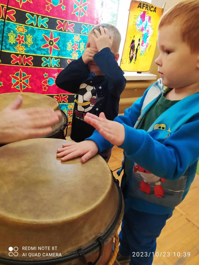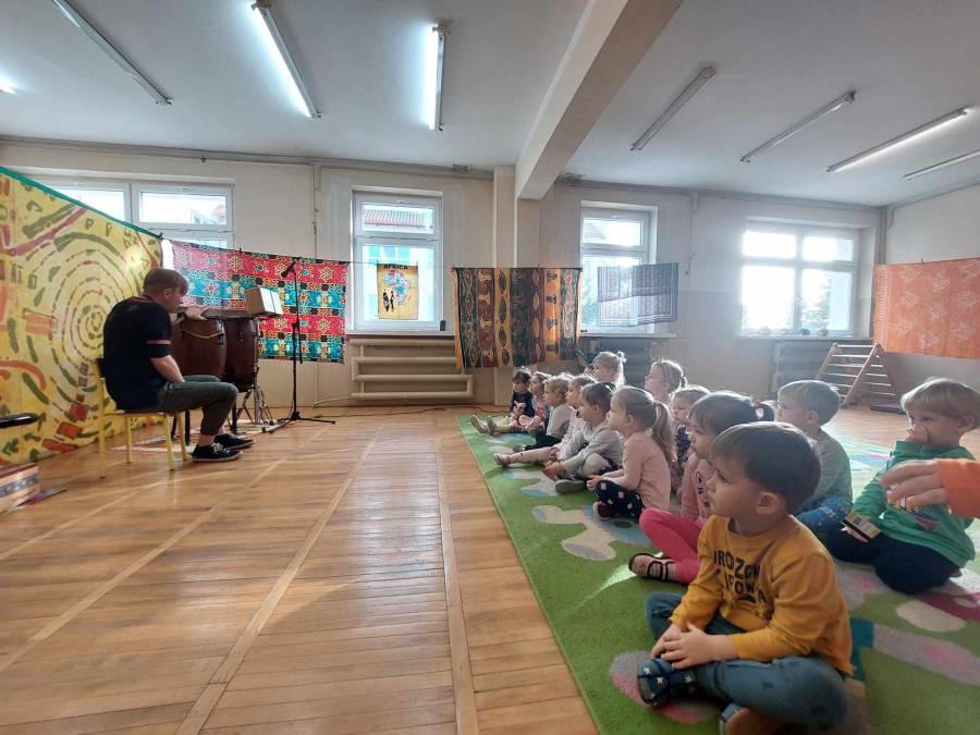 Już kolejny raz mieliśmy okazję bawić się muzyką, rytmem, dźwiękami, wykorzystując instrumenty etniczne, które zaprezentował nam pan Sławomir Głowala ze Świecia. Słuchając dźwięku instrumentów dzieci przeniosły się w wyobraźni do lasu. Niezwykle radosnym i  ciekawym doświadczeniem była samodzielna gra na tych instrumentach.