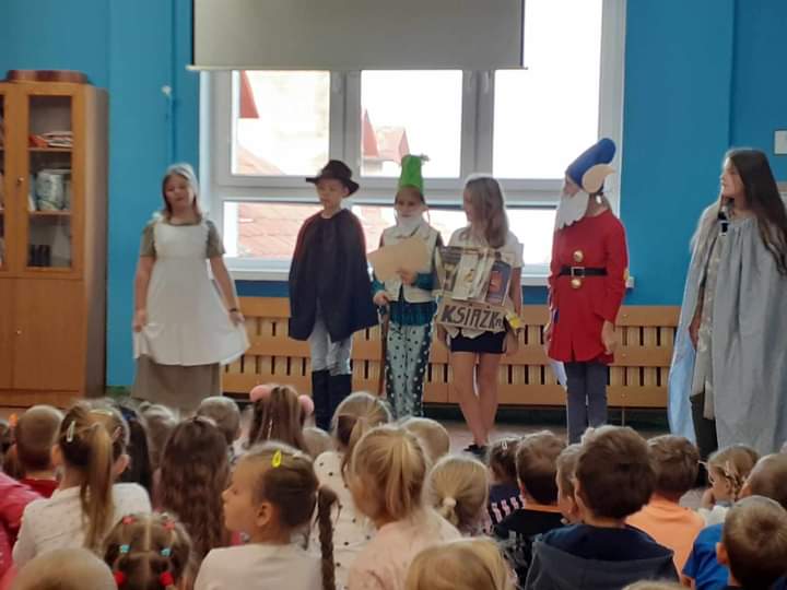 Dzięki uprzejmości pani Ewy Tokarskiej-Chojnackiej i Gabrieli Łysek, mieliśmy okazję zobaczyć przedstawienie promujące czytelnictwo. Same sławy wystąpiły na scenie, m.in.: Kopciuszek, Śnieżka i Calineczka. Losy tych postaci i wielu, wielu innych możecie poznać dzięki klasycznym, znanym bajkom! Wystrarczy odwiedzic bibliotekę. Gratulujemy uczniom klas czwartych i ich wychowawcom! Było pięknie.