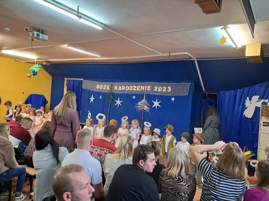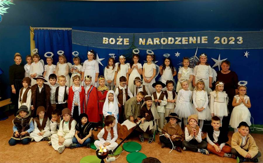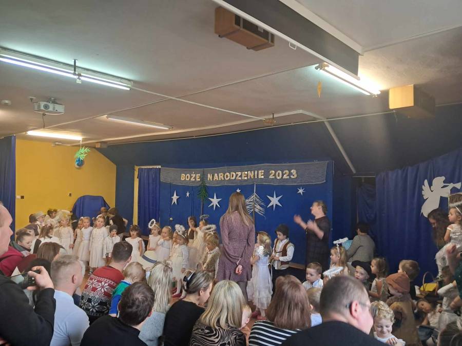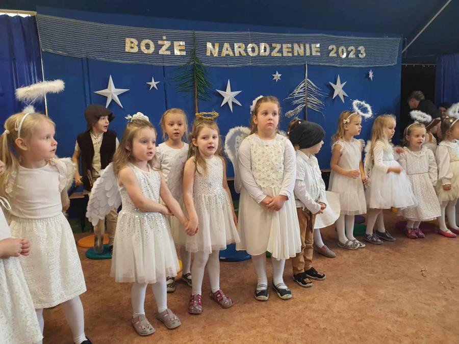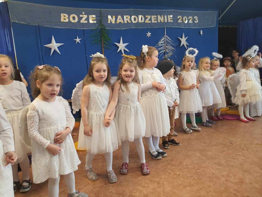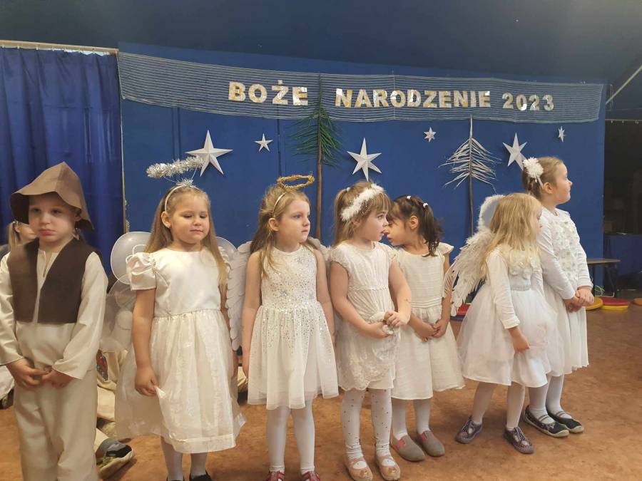 Występami jasełkowymi zakończyliśmy czas przygotowań do świąt Bożego Narodzenia w przedszkolu. Dzieci w rolach aniołków, pastuszków, królów i Świętej Rodziny recytowały świąteczne wiersze i śpiewały piosenki oraz znane kolędy wspólnie z rodzicami i zaproszonymi gośćmi, którzy zaszczycili nas swoją obecnością i nagrodzili występy oklaskami.