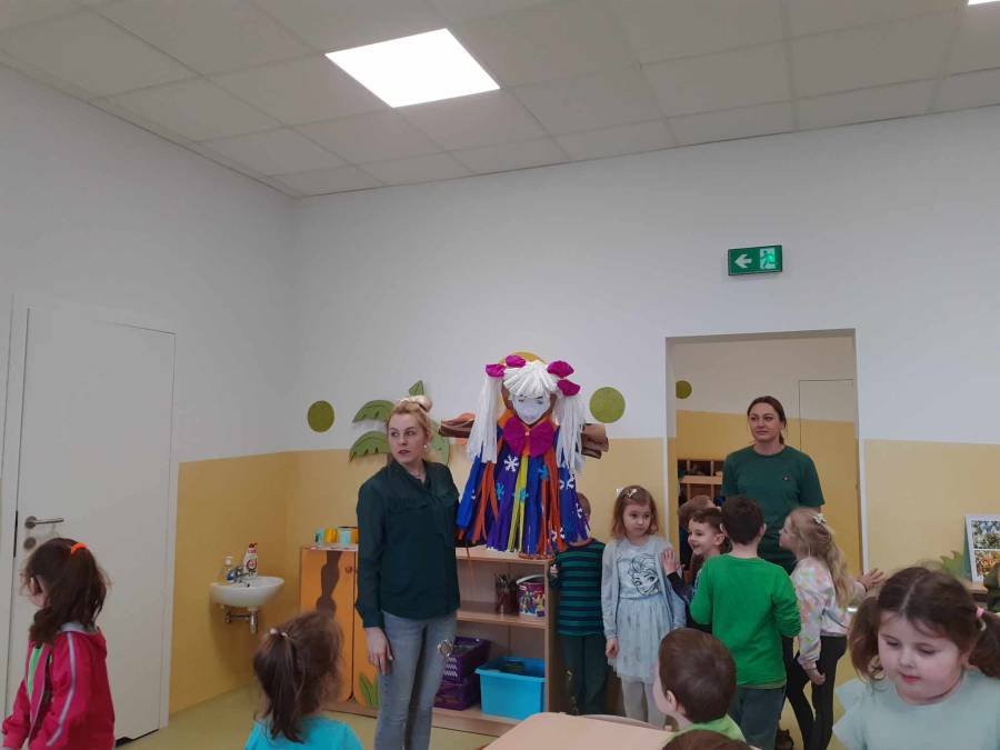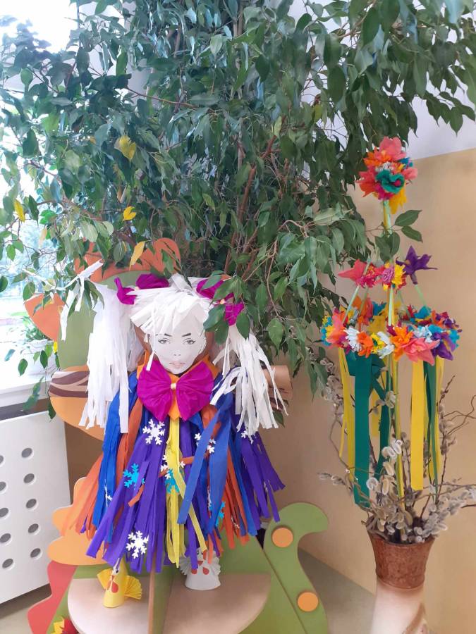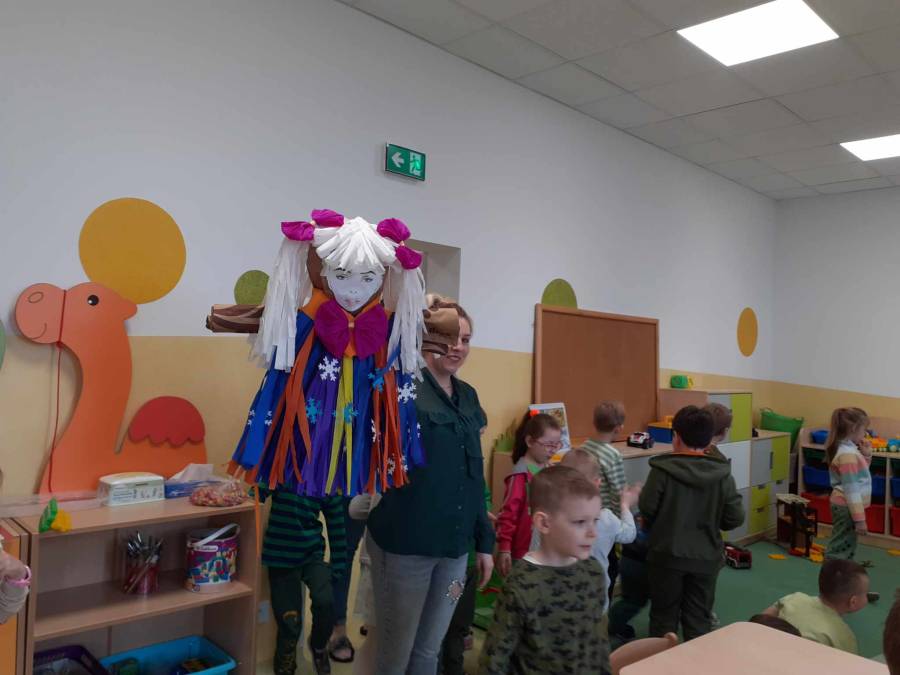 Dzień 21 marca w naszym przedszkolu był radosny i kolorowy. Deszczowa pogoda za oknem zmusiła nas do zmiany planów, jednak nie przeszkodziła nam w tradycyjnym powitaniu tej długo oczekiwanej pory roku. Żegnanie zimy i przywitanie wiosny związane jest bowiem z miłymi przeżyciami wszystkich przedszkolaków. W tym roku postanowiliśmy nie palić już Marzanny, w zamian wysłaliśmy ja na długi urlop.
