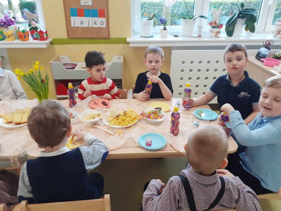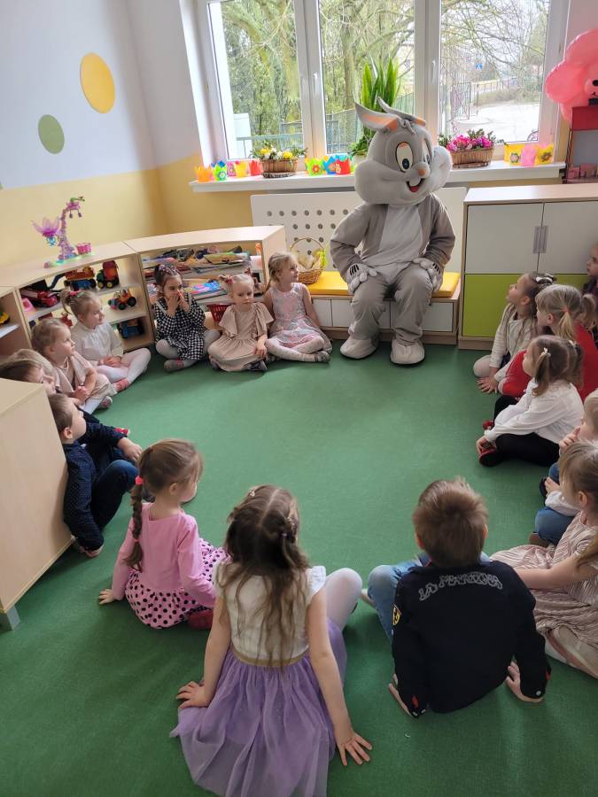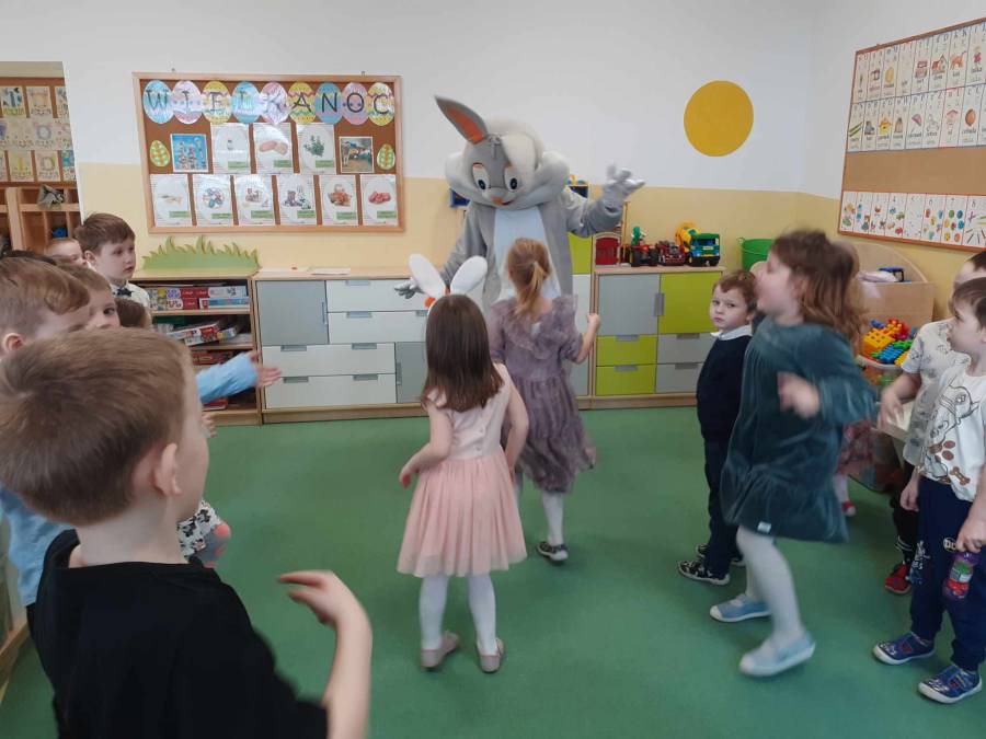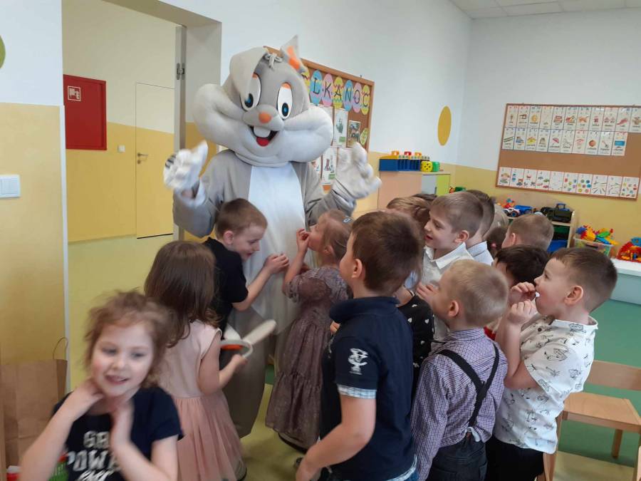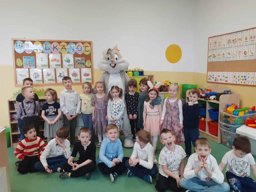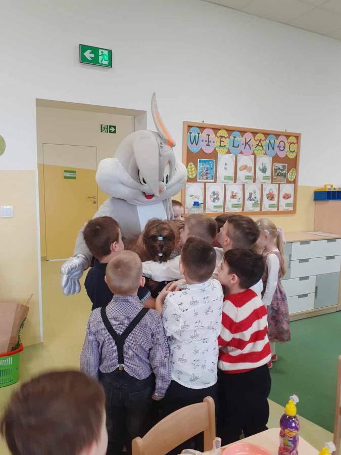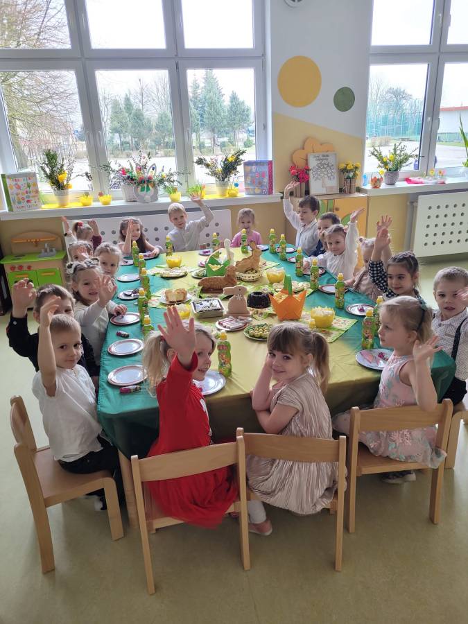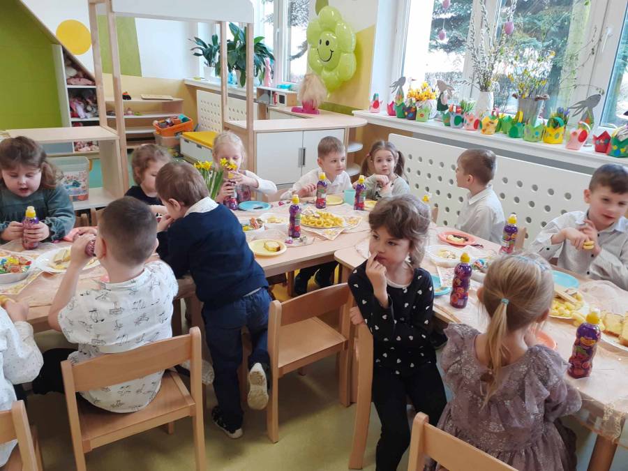 We wtorek 26 marca w naszym przedszkolu odbyło się uroczyste śniadanie wielkanocne, które zostało rozpoczęte wspólnym składaniem sobie życzeń świątecznych. Ten dzień miał wyjątkowy charakter -dzieci śpiewały piosenki świąteczne i bawiły się w zabawy związane z tradycjami wielkanocnymi. Po śniadaniu wszystkie grupy odwiedził Wielkanocny Zajączek, który poczęstował dzieci słodyczami i zostawił upominki. Wielkanocne świętowanie sprawiło dzieciom wiele radości.