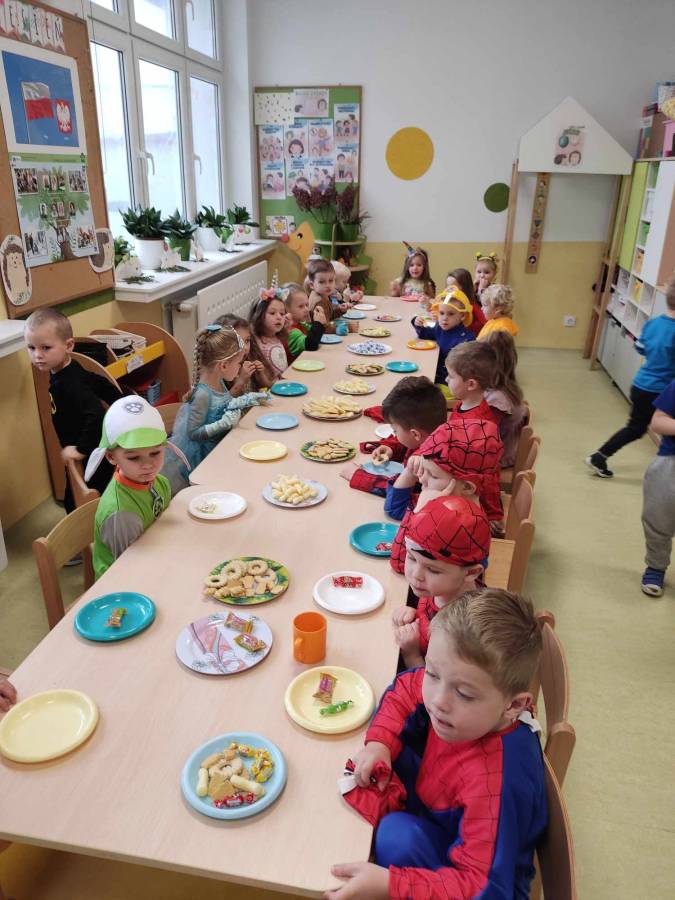 W tym dniu w naszym przedszkolu pojawiło się mnóstwo bajkowych postaci, oczywiście byli to nasi przedszkolacy w bajkowych przebraniach. Dzieci słuchały czytanych bajek, rozpoznawały bajkowe postacie i tytuły bajek, tańczyły przy bajkowych piosenkach a przede wszystkim bawiły się świetnie . Ten dzień sprawił przedszkolakom wiele radości, a jednocześnie przypomniał jak ważne są bajki, i że warto po nie sięgać .