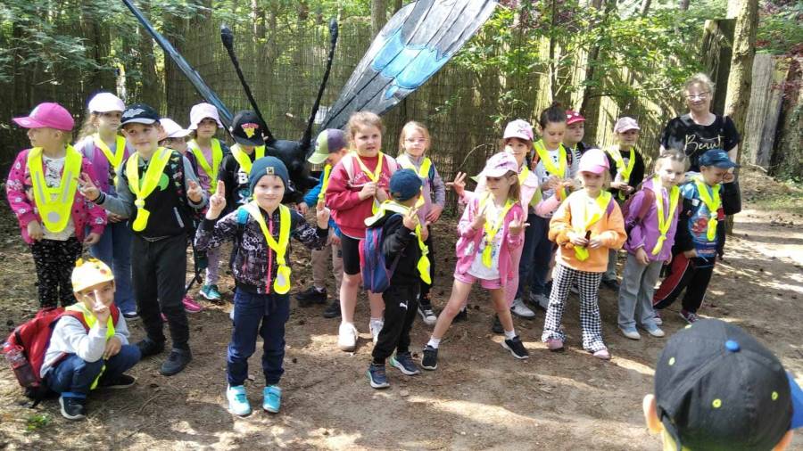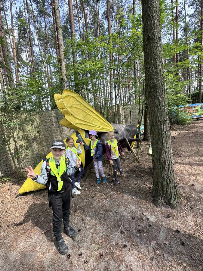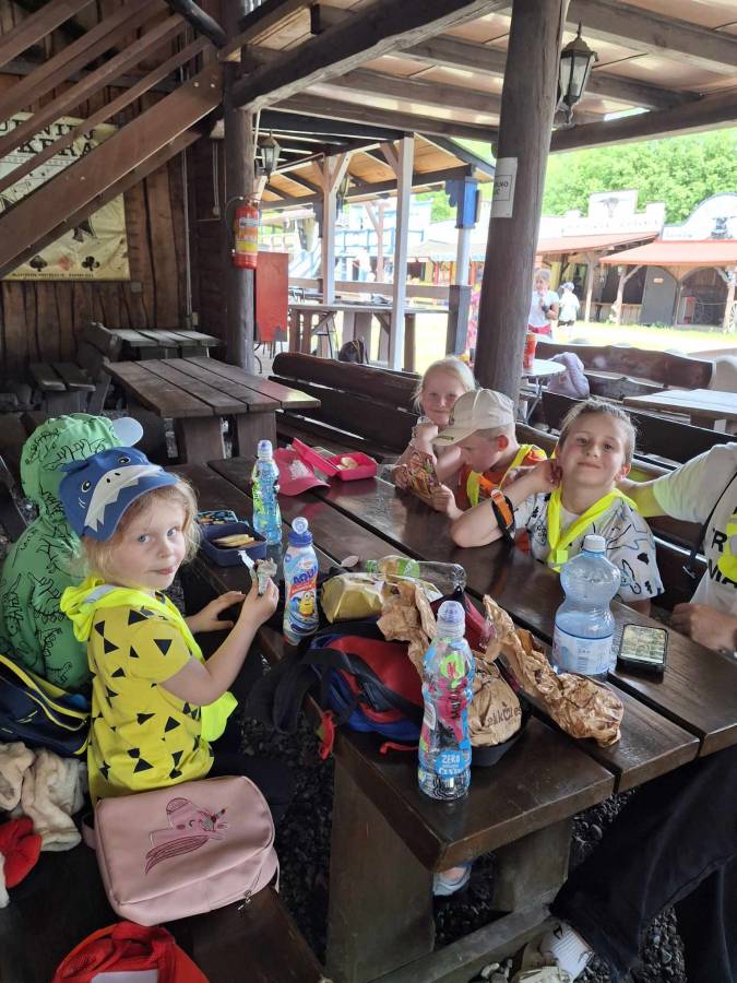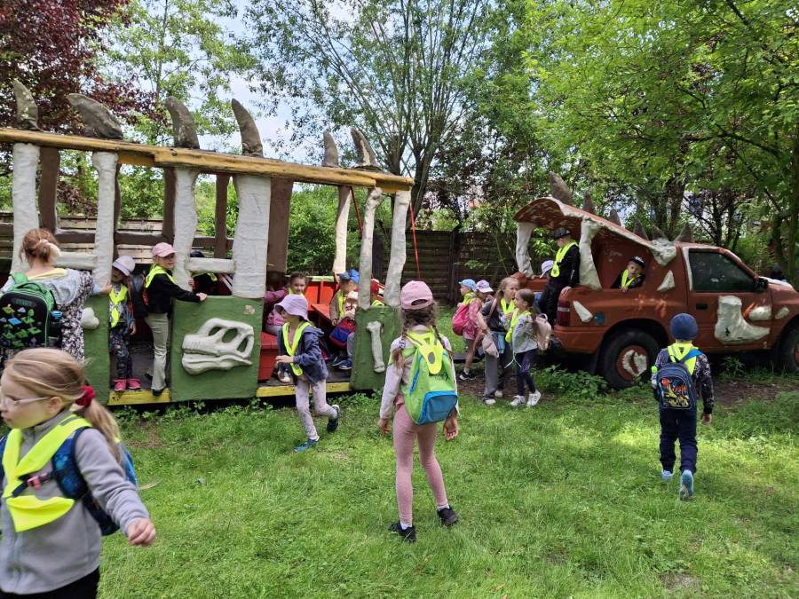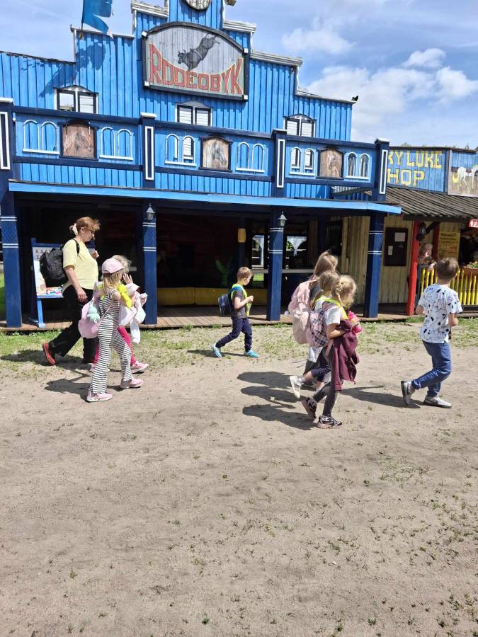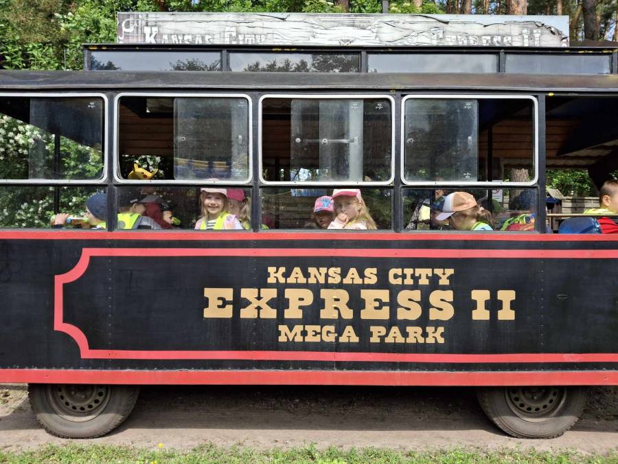 Najstarsze przedszkolaki jako ostatnie wyruszyły na wycieczkę. Motylki i Biedronki odwiedziły Mega Park w Grudziądzu. Podczas pobytu w tym urokliwym miejscu zwiedzaliśmy mini zoo, Park Dinozaurów, miasteczko  westernowe, Bajkową Krainę, jechaliśmy kolejką i oglądaliśmy pokazy kowbojskie. Mieliśmy  również czas na zabawę w parku rozrywki.