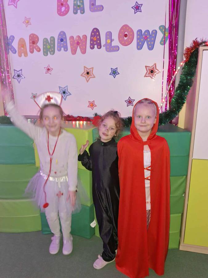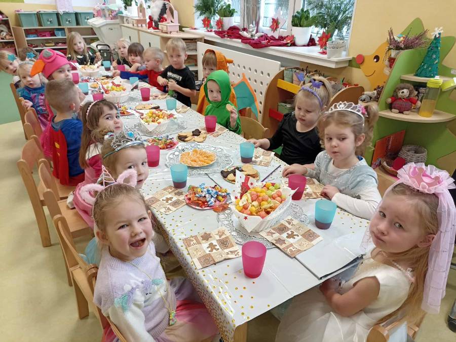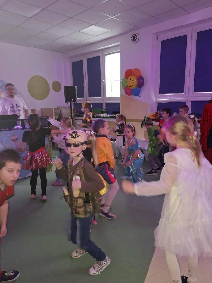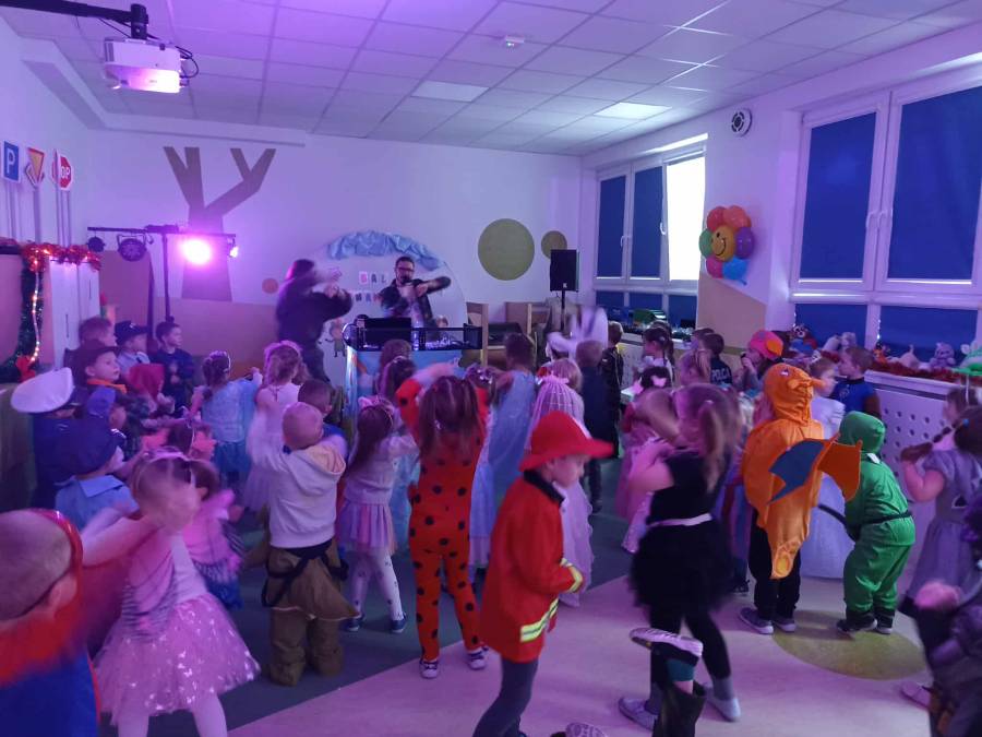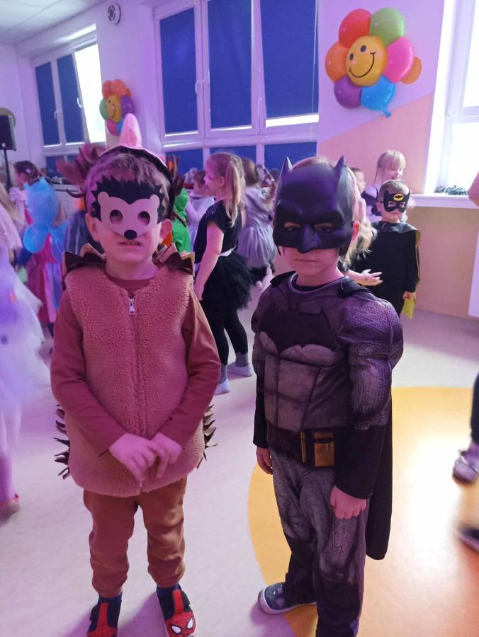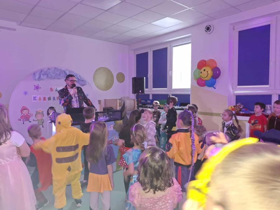 W dniu 14.01.2026 r. w naszym przedszkolu odbył się długo wyczekiwany bal karnawałowy. Dzieci przybyły w pięknych, pomysłowych przebraniach. Wśród uczestników można było spotkać księżniczki, super bohaterów, zwierzątka, wróżki, policjantów oraz wiele innych barwnych postaci. Wszystkie stroje wzbudzały zachwyt i wywoływały uśmiechy na twarzach. Bal rozpoczął się wspólnymi tańcami i zabawami przy muzyce.  Nie zabrakło również krótkiego poczęstunku, który pozwolił uczestnikom nabrać sił do dalszej zabawy. Bal karnawałowy dostarczył dzieciom wiele radości i niezapomnianych wrażeń. Wszyscy bawili się znakomicie, a uśmiech i dobra zabawa towarzyszyły nam przez cały czas trwania wydarzenia.