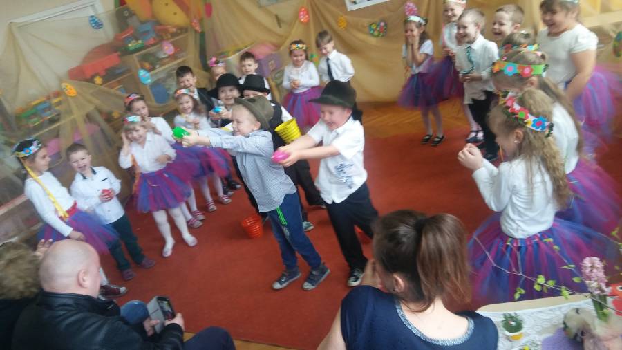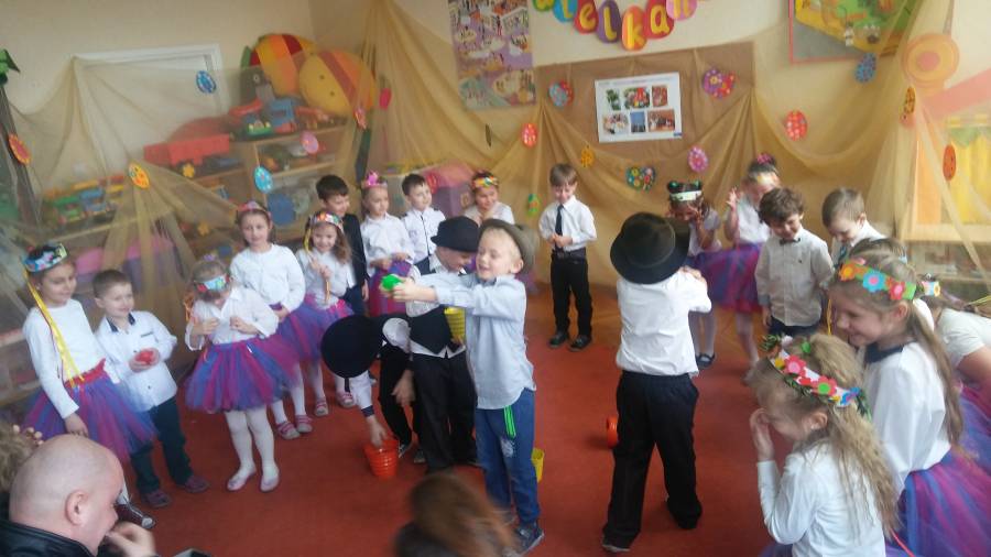Przedstawienie wielkanocne w grupie Biedronek przybliżyło wszystkim piękne tradycje związane z Wielkanocą, był nawet najprawdziwszy śmigus-dyngus.