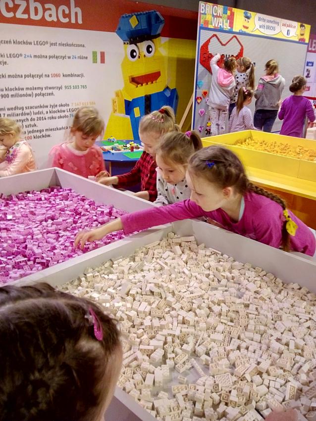 W środę 14 kwietnia Motylki wraz z liczną grupą mam były na wycieczce w Bydgoszczy, na największej w Polsce wystawie budowli z klocków Lego. Oprócz samej wystawy wielką atrakcją dla dzieci było dotarcie do miejsca, w którym ona się znajdowała m.in podróż pociągiem i tramwajem, sam pobyt na dworcu kolejowym w Bydgoszczy z obowiązkowym zaliczeniem schodów ruchomych. Świat Lego, zamknięty na 1500 m2 zapierał dech w piersiach. Kilkanaście stref tematycznych zaspokoiło wszystkie dziecięce gusta. Były znane serie i wszystko to co fanom od konstrowania podpowiedziała wyobraźnia: znane postacie, budowle, pojazdy, instrumenty, mapy, makiety, portrety. Budowle znajdowały się w szklanych gablotach, często wsparte efektami świetlnymi i możliwością wprawienia w ruch. Jednak nie byłoby pełnej satysfakcji bez wejścia do strefy zabawy. Chłopców najbardziej urzekły dwa stanowiska PS4. Wszyscy - dzieci i opiekunowie zdali egzamin z zdyscyplinowania i zachowania. Wracając zgodnie przyznaliśmy, że warto takich przygód próbować w przyszłości. Polecamy!