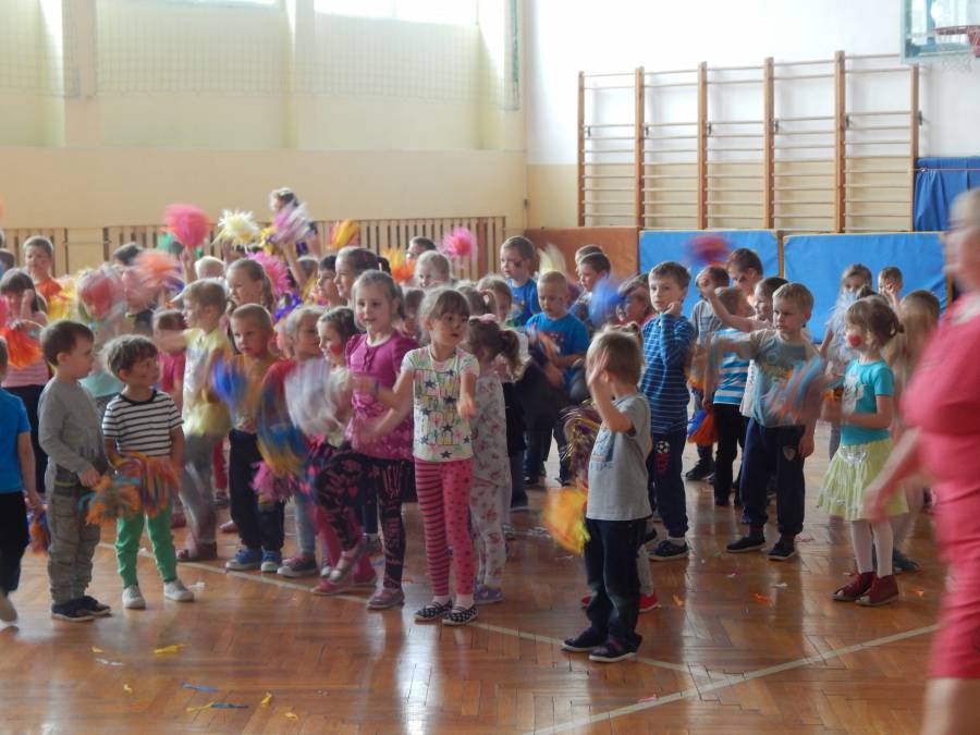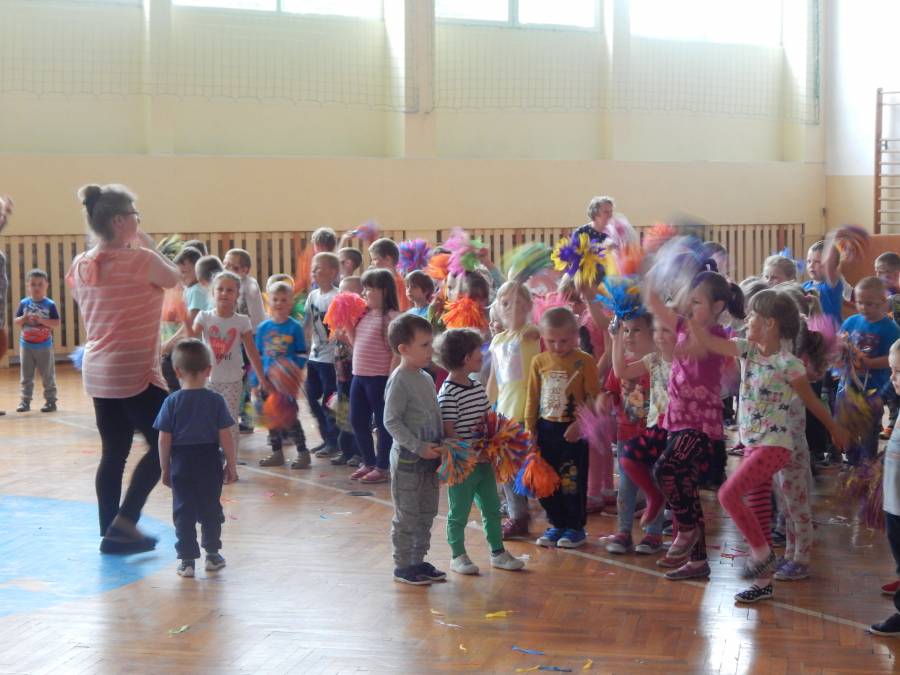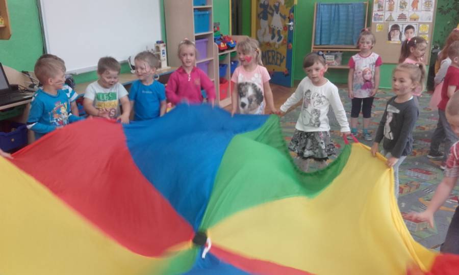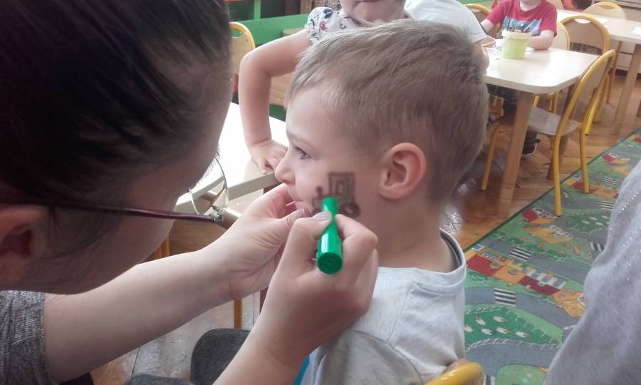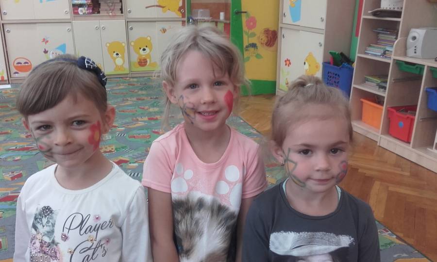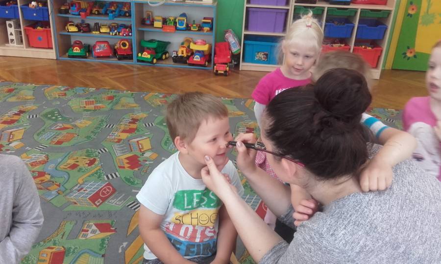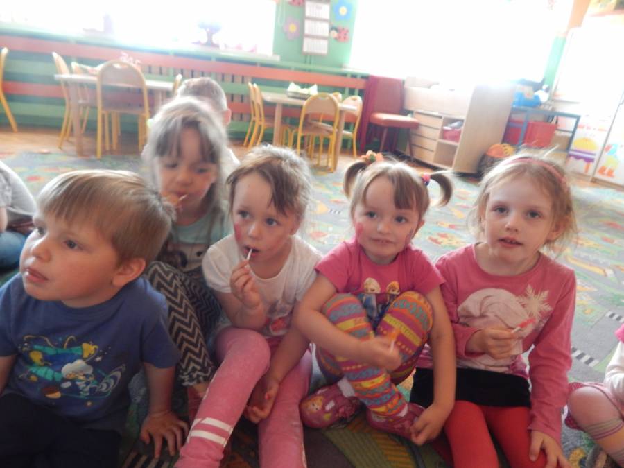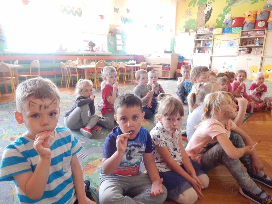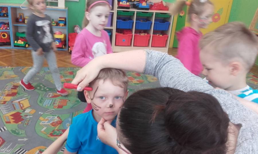 Malowanie buziek, zabawy z chustą animacyjną, oglądanie występu mażoretek, tańce i zabawy przy muzyce oraz oczywiście słodkie niespodzianki czekały w tym dniu na naszych kochanych przedszkolaków z okazji ich święta.