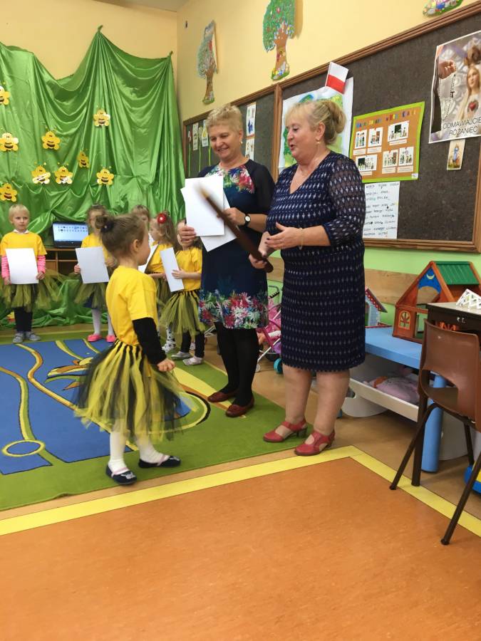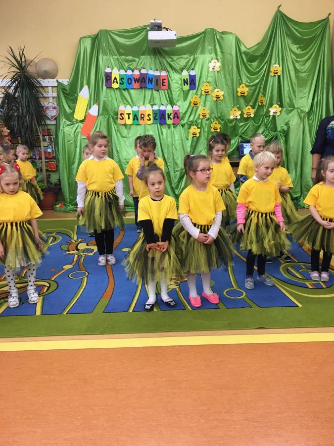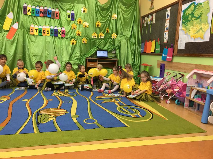 W poniedziałek 29 października  dzieci z grupy "Pszczółki" stały się starszakami. Podczas uroczystości „Pasowania na Starszaka” zaprezentowały wiersze oraz piosenki związane z życiem starszego przedszkolaka, a następnie poprosiły panią dyrektor, by przystąpiła do pasowania ich na starszaków. Każde z nich z dumą i wielkimi emocjami powtarzało słowa ślubowania, a następnie zostało pasowane zaczarowaną kredką na starszaka. Dzieci na pamiątkę tej uroczystości otrzymały dyplomy i prezenty.