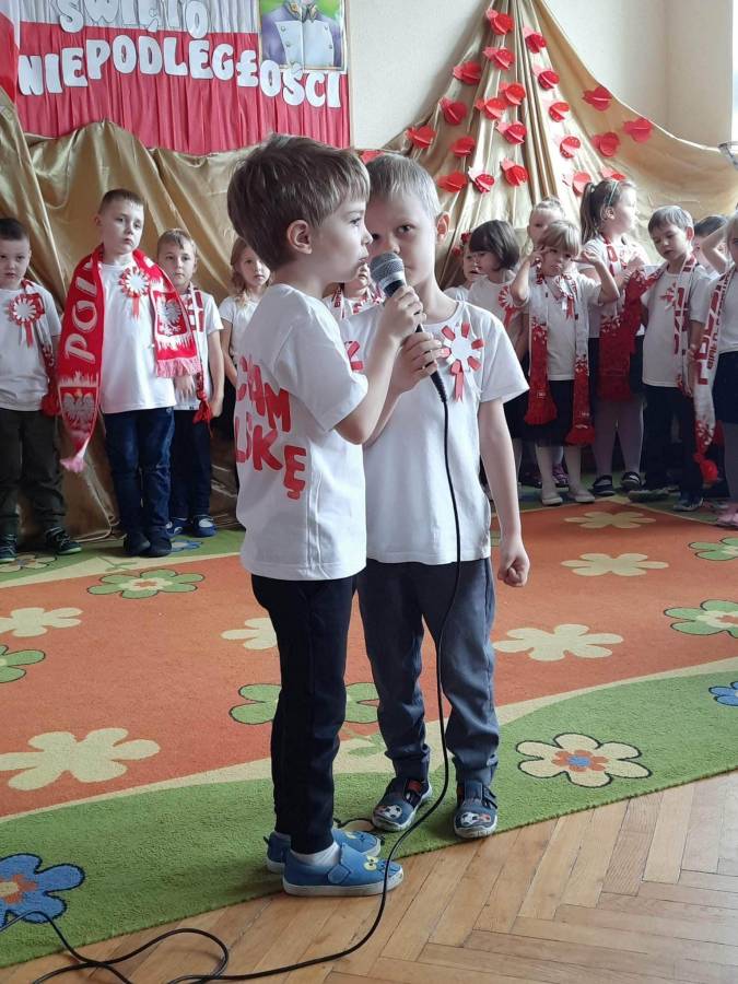 Motylki i Biedronki w obecności licznych gości: Dyrekcji naszej Szkoły i Rodziców zaprezentowały montaż słowno - muzyczny o tematyce patriotycznej pt. "KOCHAM POLSKĘ".