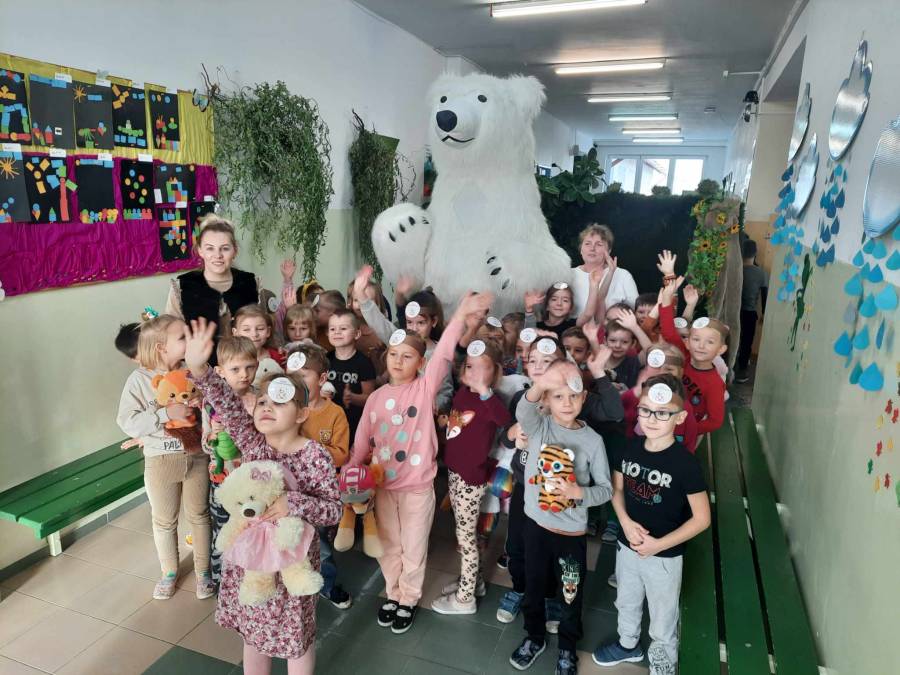 Kolejny już rok gorąco przytuliliśmy do serca wszystkie misie, duże, małe i te naprawdę wielkie! A ten największy miś, który niespodziewanie nas odwiedził, zasługuje na serdeczne podziękowania. Dzięki uprzejmości naszych rodziców, państwa Magdaleny i Dawida Ledzińskich, mogliśmy poznać i zabawić się z  ogromnym polarnym Misiem Krysiem. Dziękujemy za niespodziankę, która sprawiła ogromną radość dzieciom !