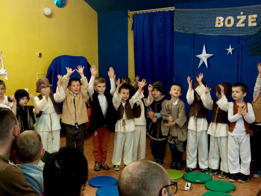 Występami jasełkowymi zakończyliśmy czas przygotowań do świąt Bożego Narodzenia w przedszkolu. Dzieci w rolach aniołków, pastuszków, królów i Świętej Rodziny recytowały świąteczne wiersze i śpiewały piosenki oraz znane kolędy wspólnie z rodzicami i zaproszonymi gośćmi, którzy zaszczycili nas swoją obecnością i nagrodzili występy oklaskami.
