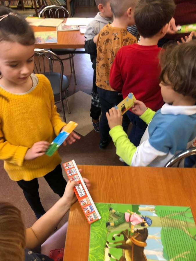 Najstarsze grupy przedszkolne, począwszy od Dnia Postaci z Bajek zgłębiają tematy związane z szeroko pojętą kulturą. Teraz jesteśmy w świecie baśni. Wybraliśmy się do szkolnej biblioteki. Pani pokazała nam różne wydania baśni, zakładki do książki wykonane przez uczniów, a na koniec podarowała każdemu piękną, kolorową zakładkę. Dziękujemy :)