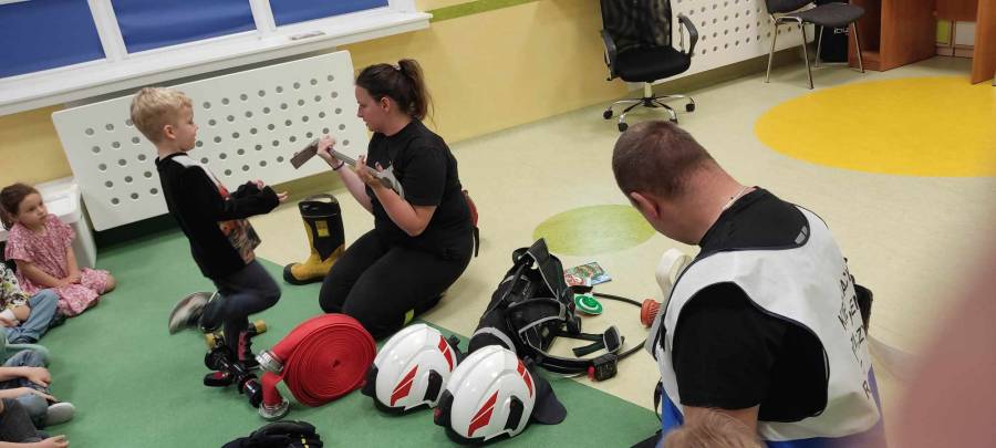 Dzięki rodzicom naszych przedszkolaków - Państwu Monice i Bartłomiejowi Schmelter oraz Pani Renacie Ciechanowskiej, którzy zorganizowali bardzo interesujące spotkanie, dzieci poznały pracę strażaków oraz sprzęt potrzebny podczas działań. Dziękujemy bardzo za odwiedziny w naszej placówce :)