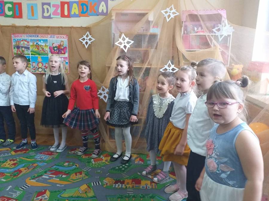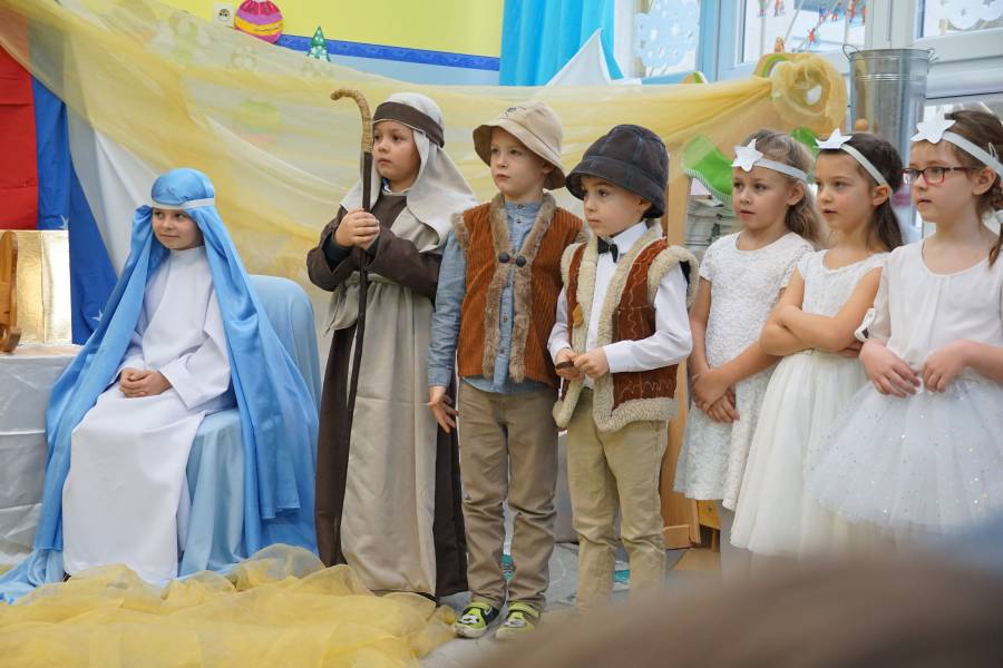 Nasze wigilijne spotkanie było ciepłą, rodzinną uroczystością. Goście nie zawiedli. Była Pani Dyrektor, babcie, rodzice, rodzeństwo. Mali aktorzy stanęli na wysokości zadania. Pięknie zaprezentowali montaż słowno-muzyczny pod tytułem "Do szopy, hej pasterze".