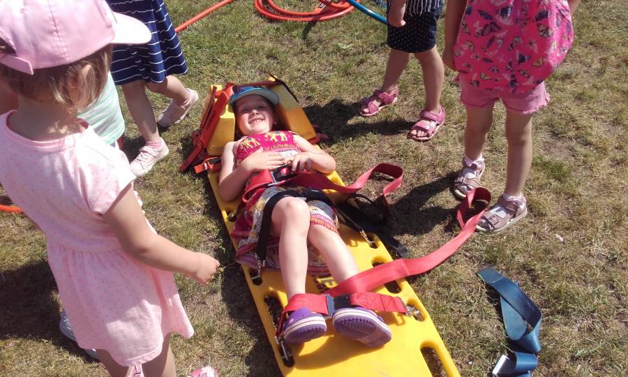 W dniu 12.06.2019 r. odbyło się spotkanie ze strażakami z OSP w Świekatowie. Wśród nich byli tatusiowie naszych przedszkolaków: Ani, Antosia i Wojtka i to właśnie dzięki ich uprzejmości spotkanie było zorganizowane, za co serdecznie dziękujemy.Strażacy interesujący sposób dokonali prezentacji stroju strażaka – ratownika oraz urządzeń używanych w trakcie akcji ratowniczej. Przeprowadzili z dziećmi rozmowę na temat bezpiecznych zasad zachowania w domu i przedszkolu oraz właściwego reagowania w sytuacjach zagrażających bezpieczeństwu. Dzieci z zainteresowaniem słuchały strażaków jednak największą radość sprawiło dzieciom lanie wody z węża strażackiego.