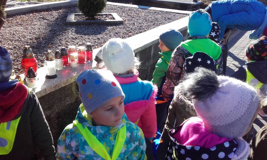 Wnawiązaniu do Święta Zmarłych w dniu 31.10.2018 roku dzieci z naszego przedszkola odwiedziły miejscowy cmentarz..Wizyta w tak ważnym miejscu niesie za sobą tradycję zapalenia zniczy, tak i w tym dniu dzieci zapaliły symboliczne światełka na grobie żołnierzy poległych podczas walk w obronie Świekatowa podczas II Wojny Światowej. .