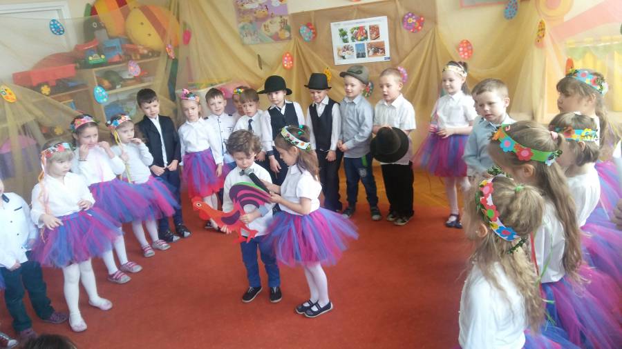 Przedstawienie wielkanocne w grupie Biedronek przybliżyło wszystkim piękne tradycje związane z Wielkanocą, był nawet najprawdziwszy śmigus-dyngus.