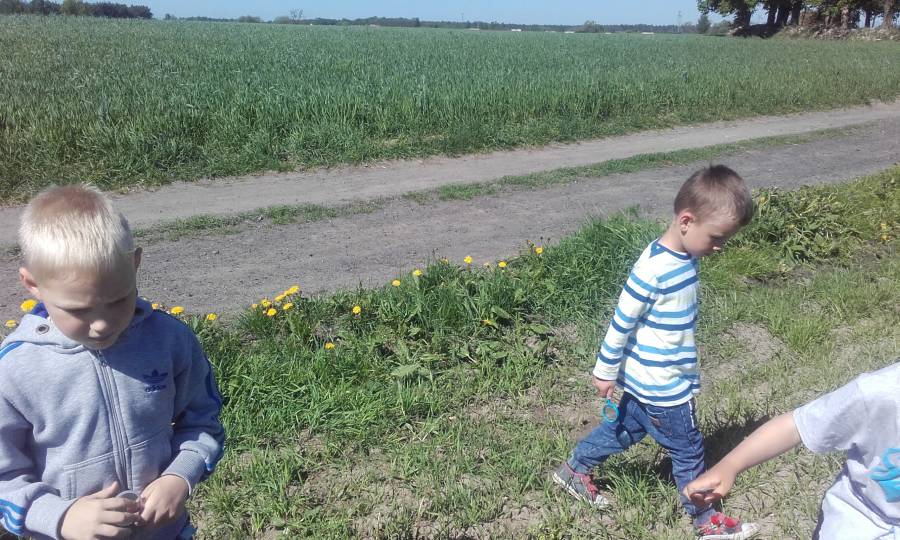 Wiosenna wyprawa na łąkę najmłodszych przedszkolaków miała na celu poznanie roślin i mieszkańców łąki. Dzieci z bliska obserwowały przyrodę i ogladały wszystko co spotkały przy pomocy lup.