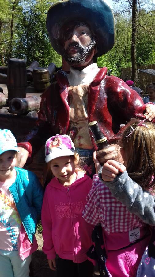 W piątek 4 maja dwie grupy najstarszych przedszkolaków - Motylki i Biedronki wyruszyły z samego rana na wycieczkę do "Mega Parku" znajdującego się w Rudniku koło Grudziądza. Na początku byliśmy świadkami napadu na bank w Kansas City zorganizowanego przez bandę Braci Dalton, oglądaliśmy pokaz Western Show "Przygody Lucky Luka" - numery popisowe rodem z Dzikiego Zachodu. Wędrując jurajską ścieżką, zobaczyliśmy dinozaury w ich naturalnych rozmiarach. W MINI-ZOO dzieci zobaczyły strusie, osły, wielbłądy, pawie, bażanty, konie, króliki, kurki i koguciki. Zwiedzały także uliczki ,,Dodge City”, Wycieczka była udana, pełna niesamowitych wrazeń i pozostanie miłym wspomnieniem.