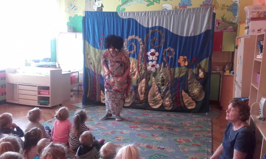 W dniu 29.09.2017 r. w naszym przedszkolu gościł teatr z Krakowa z przedstawieniem "Hipopotam Hipcio" Bohater przedstawienia - Hipcio Flipcio to gruby hipopotam, który na dodatek nosi okulary i nie ma o sobie najlepszego zdania. Jego znajomi dokuczają mu na każdym kroku. Bohater bajki Hipcio nie poddaje się, a z pomocą przychodzi mu Dzikusek. Hipopotam przechodzi przemianę, pojawia się na balu w świetnej kondycji i zaskakuje wyśmiewające go zwierzaki. Bajka ta uczy, że „wyśmiewanie już nie w modzie” i pokazuje, że w każdym jest coś dobrego i trzeba to odkryć. Zwraca też uwagę na to, że warto dbać o siebie i pracować nad swoimi słabościami. Dzieci tańczyły razem z bohaterami przedstwaienia i doskonale się bawiły. .Bajka ukazała jak ważną rolę w zachowaniach społecznych odgrywa tolerancja i jakie są jej pozytywne efekty.