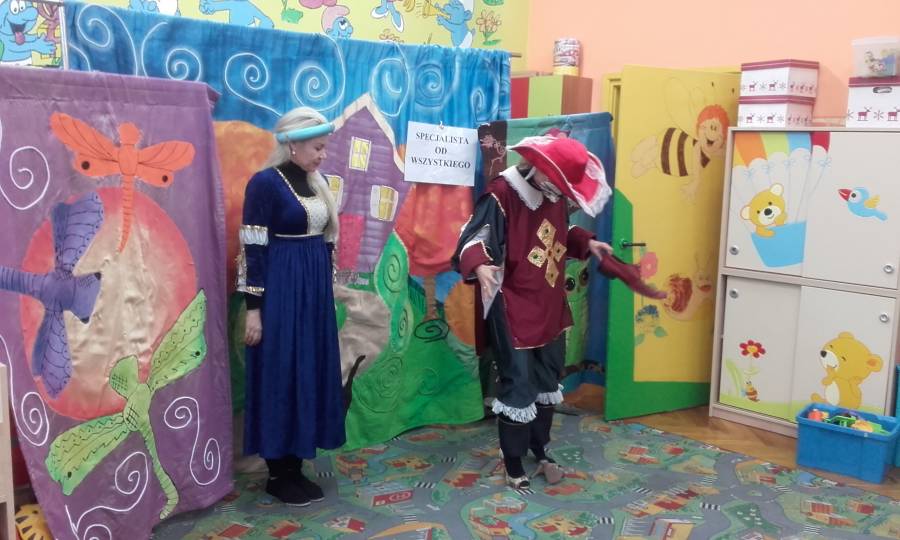 W dniu 25.10.2017 r. gościliśmy w przedszkolu aktorów Teatru Profilaktycznego -Edukacja i Animacja "Magik" z Białegostoku. Dzieci ze wszystkich grup obejrzały przedstawienie pt.:"Kłopoty księżniczki Karoliny". Główna bohaterka przedstawienia. księżniczka Karolina była bardzo zarozumiała i pewna siebie, jednak po pewnym czasie zrozumiała, że aby mieć przyjaciół nie można myśleć tylko o sobie.