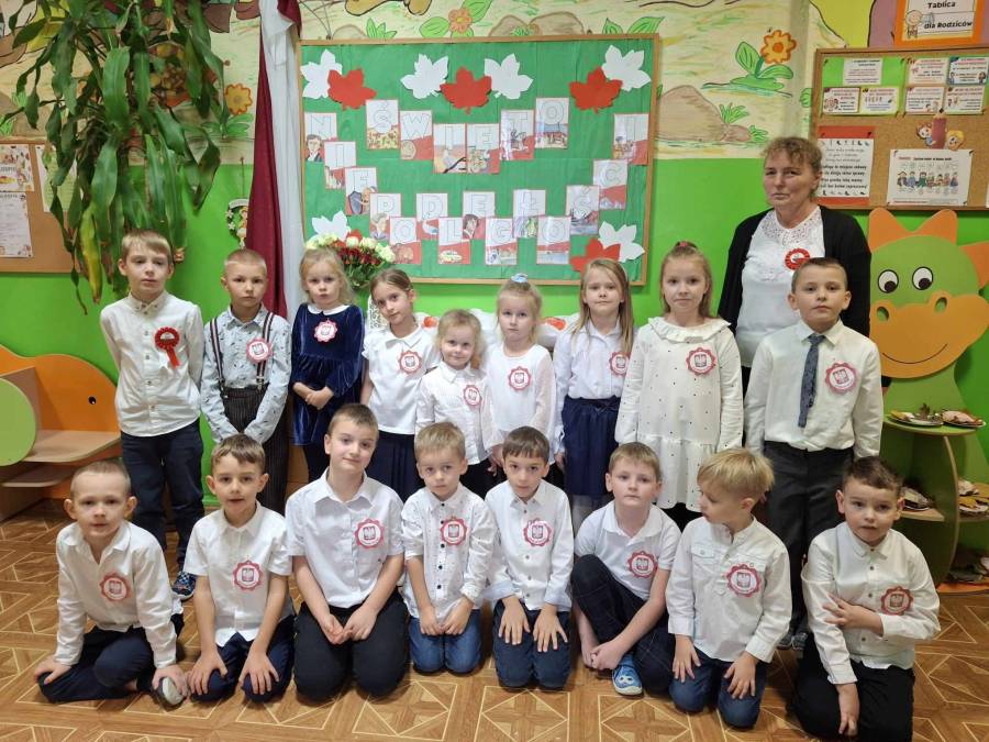 106 rocznica odzyskania niepodległości przez Polskę to okazja, by w przedszkolu porozmawiać o tym, czym są symbole narodowe, patriotyzm czy sama niepodległość. Dzieci wykonały kokardy narodowe, śpiewały piosenki o Polsce oraz wykonywały prace plastyczne przedstawiające nasze symbole narodowe. Kolejny raz wzięliśmy również udział w akcji SZKOŁA DO HYMNU i o godzinie 11:11 wspólnie z uczniami naszej szkoły zaśpiewaliśmy Mazurek Dąbrowskiego oraz piosenkę ,,Polak mały". Wszystkie te działania miały na celu kształtowanie u dzieci miłości i przywiązania do kraju ojczystego, jego kultury i tradycji.