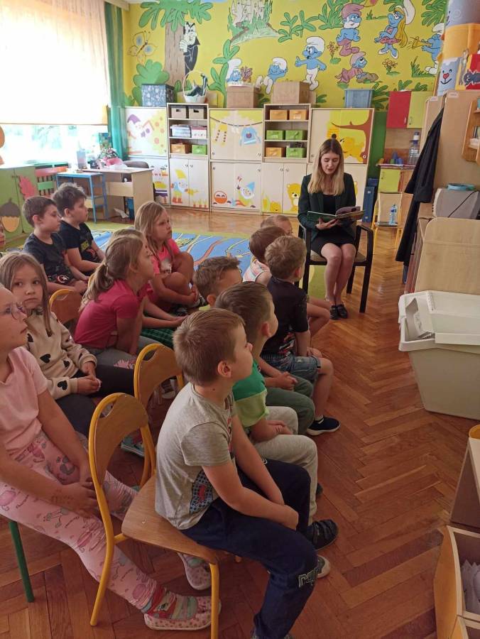 Dzisiaj, nasze dwie najstarsze grupy z przedszkola, "Motylki i Biedronki", odwiedziła pani adwokat, Alicja Topolińska z kancelarii adwokackiej z Bydgoszczy. W ramach akcji: "Bajeczni adwokaci", przeczytała nam bajkę pt.: "Leśne sprawy Misi adwokatki". Pani Alicja przybliżyła nam również zawód adwokata i zaprezentowała swój strój adwokata - togę